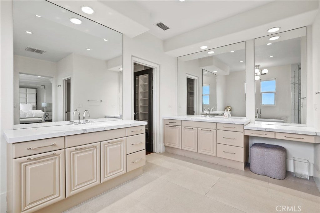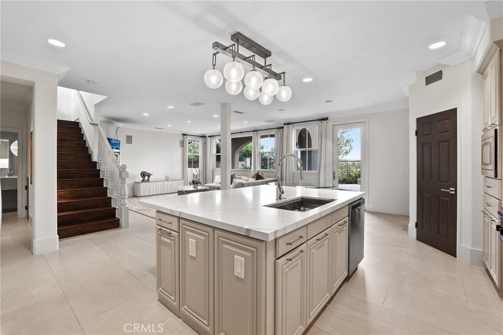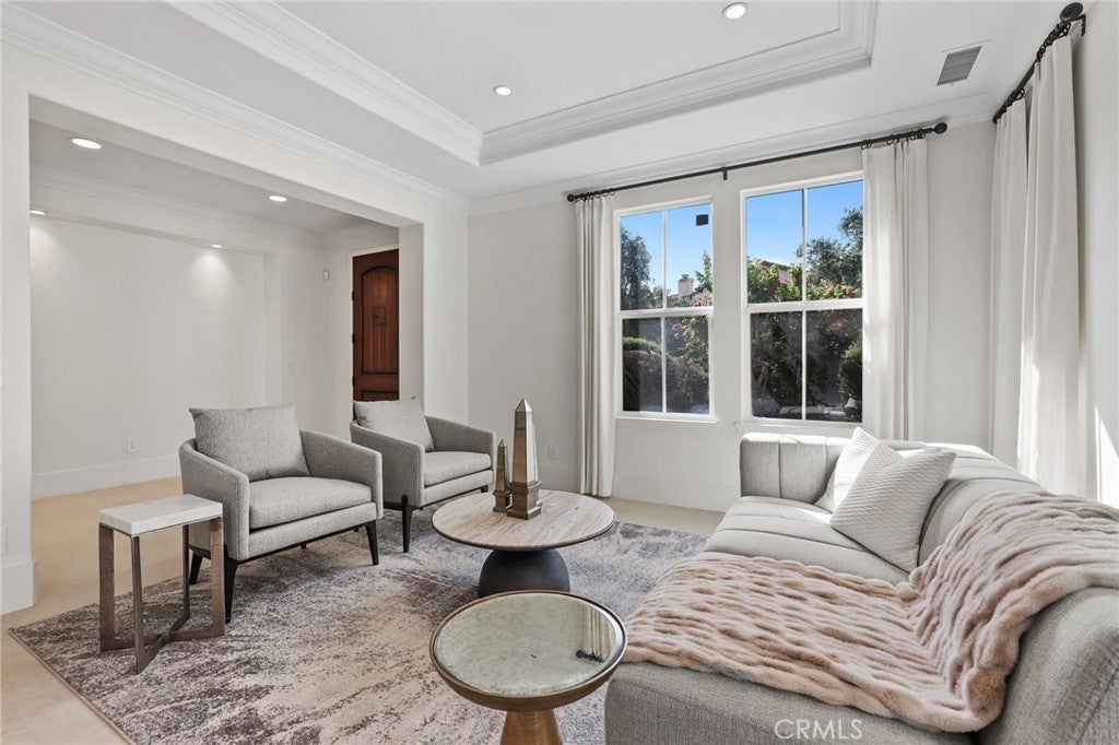 Completely reimagined in 2024 with an extensive remodel, this five-bedroom, five-and-a-half-bath residence is a showcase of modern sophistication, blending timeless design and top quality finishes with uncompromising attention to detail. Perched on a ultra-desireable street within Quail Hill, the home commands unobstructed panoramic city and mountain views from both levels—sweeping, private vistas that transition seamlessly from sunrise to sunset. From the moment you arrive, a custom wood entry door and lush, newly designed landscaping set the tone for the elegance within. Inside, every surface has been touched by thoughtful craftsmanship and intentional design. Imported tile flooring, House of Rohl fixtures, and crystal-clear glass shower enclosures exemplify the home’s commitment to luxury. The spa-inspired primary bath is a true sanctuary, centered around an 84” Victoria + Albert soaking tub and complemented by bespoke finishes that rival any five-star resort. The gourmet kitchen is as functional as it is beautiful, boasting custom cabinetry, a built-in stainless steel refrigerator, and expansive quartz slab countertops. Open-concept living spaces are framed by crown mouldings, effortless blinds, and seamless indoor-outdoor flow to an entertainer’s backyard. Here, a built-in BBQ, firepit, and multiple seating areas provide a dramatic setting for gatherings, all oriented to maximize the breathtaking views. Designed for versatility, the home features a main-floor full bedroom/bathroom suite ideal for guests or multi-generational living, while upstairs bedrooms include custom closet systems for effortless organization. A three-car garage with epoxy flooring underscores the property’s practicality and convenience. Just steps from shopping and the award-winning Alderwood Basics Elementary School, 113 Bottlebrush is more than a home—it’s a rare opportunity to own a completely revitalized Irvine residence that embodies luxury, comfort, and convenience in equal measure.