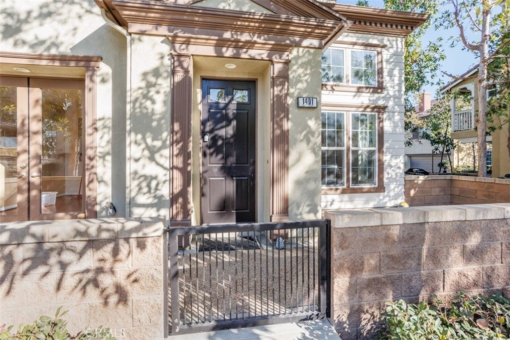 BEAUTIFUL END UNIT 2-STORY HOME IN COLUMBUS SQUARE! This upgraded residence offers an OPEN FLOOR PLAN with 3 bedrooms, a versatile loft, and 3 full baths, providing approximately 1,922 sq. ft. of comfortable living space. The living room showcases a cozy fireplace and media niche and opens to the formal dining room. The dining room features French doors leading to the enclosed patio, extending the living space outdoors. The well-appointed kitchen includes granite countertops, stainless steel appliances, a breakfast bar, and a pantry. A main-floor bedroom and full bath offer flexibility for guests or a home office. The laundry room with linen cabinetry and a sink is conveniently located downstairs. Upstairs, the expansive primary suite boasts a spacious walk-in closet and a spa-like bath with a soaking tub and walk-in shower. An additional bedroom, full bathroom, and loft complete the upper level. Hardwood flooring enhances the living areas, while tile flooring is featured in the kitchen, bathrooms, and laundry room. This home includes a 2-car garage with direct access. Residents of Columbus Square enjoy resort-style amenities, including a pool, spa, parks, and clubhouse. Ideally located near parks, shopping, and schools, this home is within the sought-after Tustin Unified School District, including Heritage Elementary, a STEAM school, and Legacy Magnet Academy. Enjoy walking distance to Veteran's Sports Park and the Village at Tustin Legacy Shopping Center, with close proximity to The District, Diamond Jamboree, and the Tustin Market Place. Easy access to the 55 and 405 freeways, and just minutes from UCI Irvine, South Coast Plaza, Fashion Island, and the OC beaches. THIS HOME HAS IT ALL!