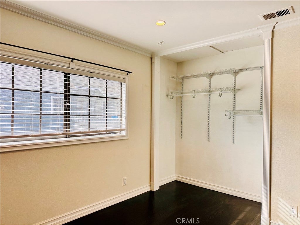 EXCEPTIONAL OPPORTUNITY FOR Immaculate and upgraded upper-level condo with two bedrooms and two baths. Below the unit is the garages, only one common shared side wall with the neighbor. Centrally located in the gated community of Village Niguel Terrace, this home is an end unit with no one above or below. Warm hardwood floors, fresh paint, recessed lighting throughout compliment a bright and open floorplan. Enter into a spacious living room with vaulted ceilings that flows into the dining area with wainscoting. The kitchen features granite counters with backsplash, stainless steel appliances and white cabinets. The master bedroom offers a spacious balcony along with a remodeled, ensuite full bathroom. The secondary bedroom is generously sized, adjacent to the remodeled hall bathroom with walk-in shower. Additional features include an indoor stackable laundry closet, crown molding, framed custom door frames, central air and recently repiped. Enjoy a spacious front patio for outdoor dining along with the community pool and spa with lush landscaping, tennis courts and dog park. One car garage directly below with additional parking space is permitted. Close proximity to local shopping, dining and Laguna Niguel Regional Park & Lake.