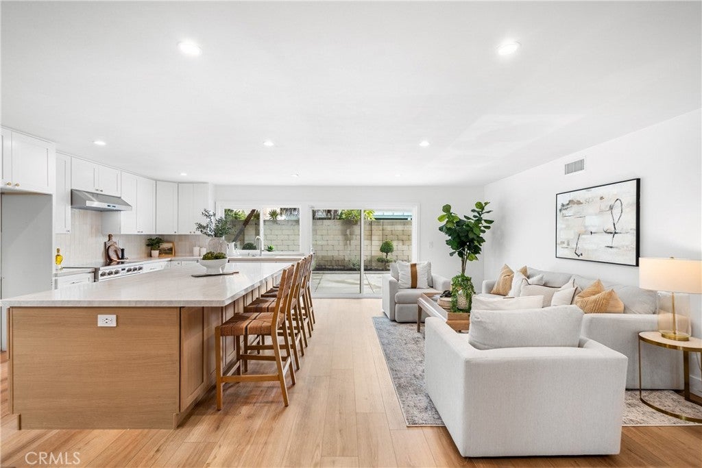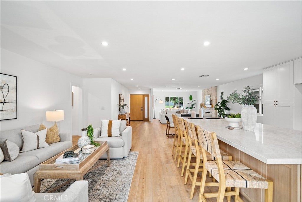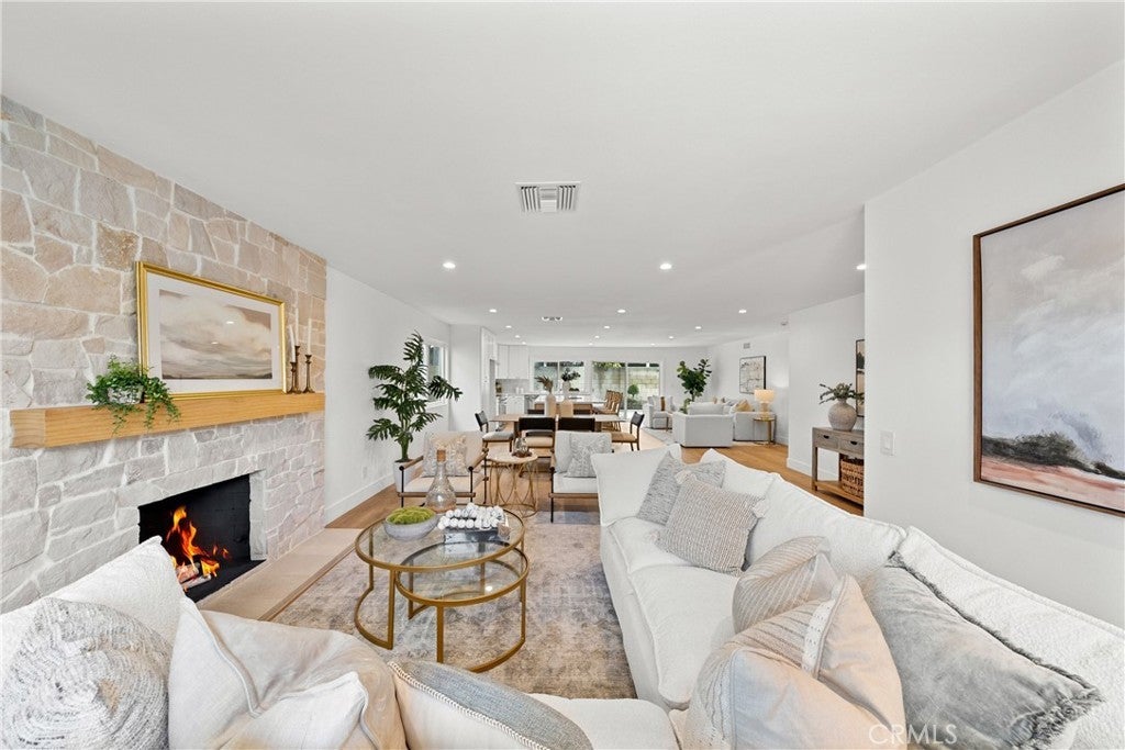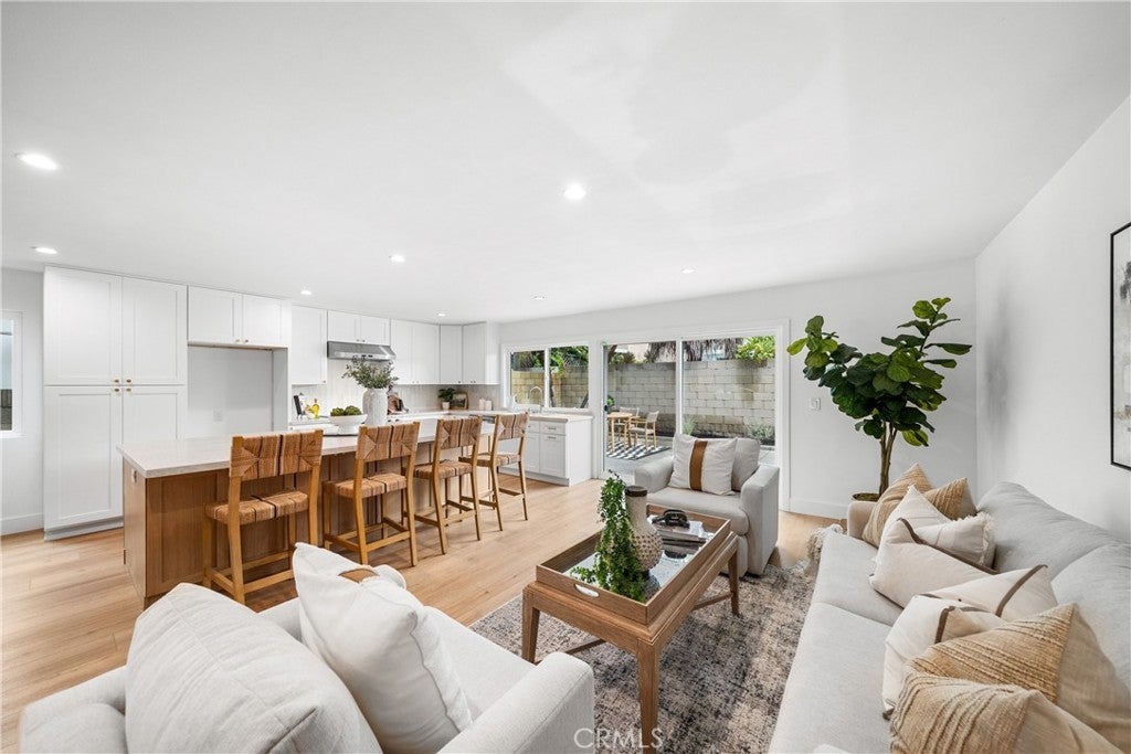 Beautifully renovated single-story home in the heart of College Park East. This 4-bedroom, 2-bath residence is located in one of Seal Beach’s most desirable neighborhoods and within the award-winning Los Alamitos School District. Thoughtfully redesigned with a modern coastal aesthetic, this move-in-ready home offers open-concept living and designer upgrades throughout. A private front courtyard with a firepit creates an inviting outdoor retreat and sets the tone for relaxed coastal living. Inside, the expanded kitchen is the centerpiece of the home, featuring quartz countertops, new cabinetry, stainless steel appliances, and an oversized island that seamlessly opens to the living and dining areas—ideal for both everyday living and entertaining. Wide-plank luxury waterproof vinyl flooring, recessed LED lighting, new interior doors, and contemporary fixtures create a cohesive, elevated feel in every room. The primary suite includes a beautifully remodeled bathroom with a glass-enclosed walk-in shower and modern tile finishes. Three additional bedrooms provide flexible options for guests, a home office, or fitness space. A full-size interior laundry room offers ample cabinetry and storage, and the second full bathroom has been updated with current designer finishes. Outside, the low-maintenance backyard extends the living space and is perfect for outdoor dining or entertaining. Recent improvements include new concrete and drainage, a brand-new HVAC system, and a new 200-amp electrical panel—offering modern efficiency and peace of mind. Ideally situated across from Bluebell Park and within walking distance to the Seal Beach Tennis & Pickleball Center and Old Ranch Country Club, College Park East is highly sought after for its proximity to top-rated schools, Old Town Seal Beach dining, world-class beaches, and easy access to the 405 and 605 freeways. This is the turnkey, single-level home buyers consistently look for in Coastal North Orange County—fully updated, functional, and truly move-in ready from day one.