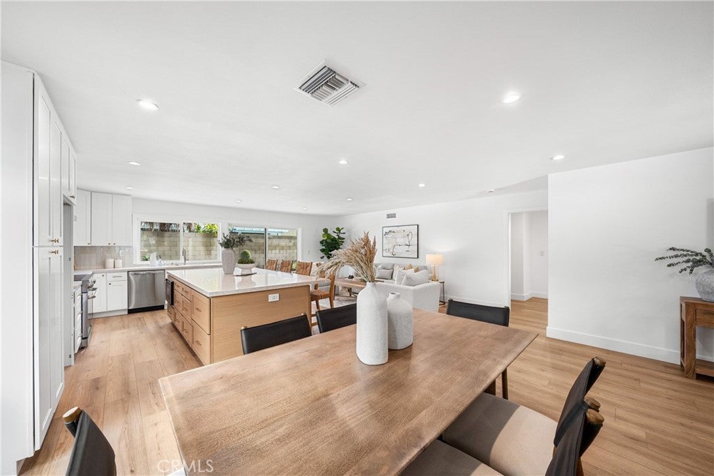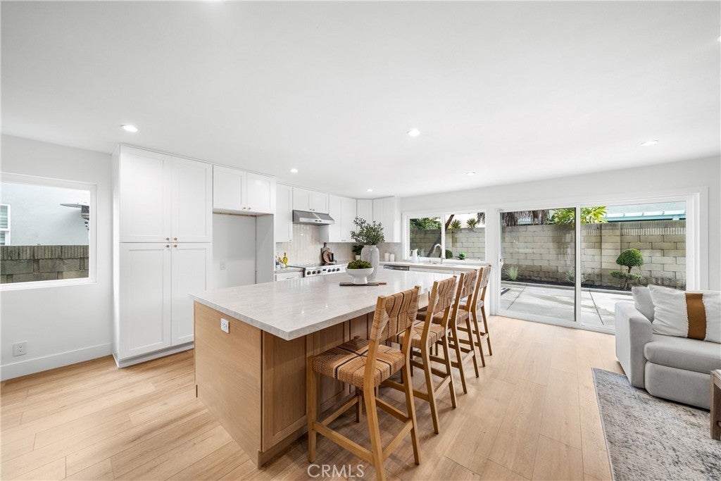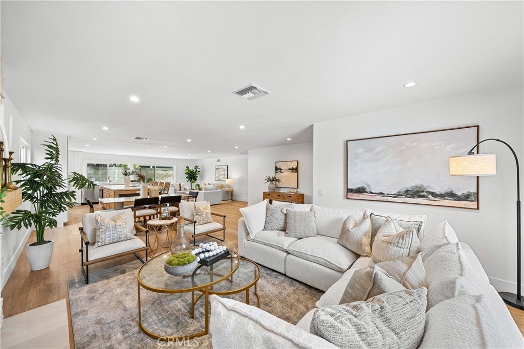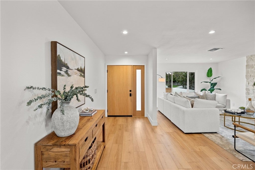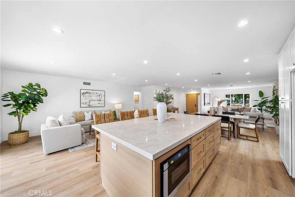 Beautifully renovated single-story home in the heart of College Park East. This 4-bedroom, 2-bath residence is located in one of Seal Beach’s most desirable neighborhoods and within the award-winning Los Alamitos School District. Thoughtfully redesigned with a modern coastal aesthetic, this move-in-ready home offers open-concept living and designer upgrades throughout. A private front courtyard with a firepit creates an inviting outdoor retreat and sets the tone for relaxed coastal living. Inside, the expanded kitchen is the centerpiece of the home, featuring quartz countertops, new cabinetry, stainless steel appliances, and an oversized island that seamlessly opens to the living and dining areas—ideal for both everyday living and entertaining. Wide-plank luxury waterproof vinyl flooring, recessed LED lighting, new interior doors, and contemporary fixtures create a cohesive, elevated feel in every room. The primary suite includes a beautifully remodeled bathroom with a glass-enclosed walk-in shower and modern tile finishes. Three additional bedrooms provide flexible options for guests, a home office, or fitness space. A full-size interior laundry room offers ample cabinetry and storage, and the second full bathroom has been updated with current designer finishes. Outside, the low-maintenance backyard extends the living space and is perfect for outdoor dining or entertaining. Recent improvements include new concrete and drainage, a brand-new HVAC system, and a new 200-amp electrical panel—offering modern efficiency and peace of mind. Ideally situated across from Bluebell Park and within walking distance to the Seal Beach Tennis & Pickleball Center and Old Ranch Country Club, College Park East is highly sought after for its proximity to top-rated schools, Old Town Seal Beach dining, world-class beaches, and easy access to the 405 and 605 freeways. This is the turnkey, single-level home buyers consistently look for in Coastal North Orange County—fully updated, functional, and truly move-in ready from day one.