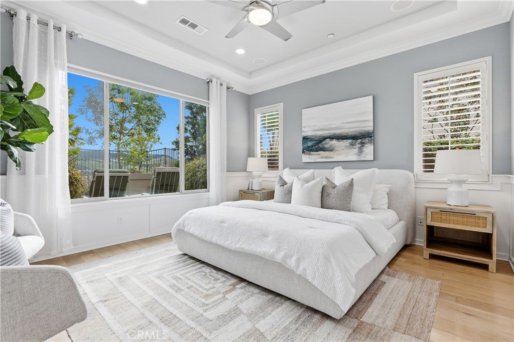 Welcome to one of the most exceptional view homes in Rancho Mission Viejo, located within the gated Gavilan Sendero community, an exclusive 55+ neighborhood known for its peaceful setting and resort-style lifestyle. Positioned to capture what many consider the best and quietest view in all of RMV, this former model home offers a rare combination of privacy, tranquility, and elevated design. Spanning 2,269 sq ft with 3 bedrooms and 2.5 baths, the home has been enhanced with over $400,000 in total upgrades, blending builder-selected finishes with extensive post-purchase improvements. Expansive bi-fold doors open the family room to a stunning California Room with fireplace, creating seamless indoor-outdoor living. The backyard is a true retreat, featuring panoramic views, a built-in BBQ, fire pit, and multiple entertaining spaces, all set on a 5,659 sq ft lot. Inside, no detail was overlooked. Highlights include custom crown molding, wainscoting, built-in features throughout, fully upgraded bathrooms, in-ceiling speakers, ceiling fans, and a beautifully added sunroom with a second fireplace. Modern conveniences include solar, wood flooring throughout, whole-house water filtration and softener, and thoughtful upgrades designed for comfort and ease. From sunrise to sunset, the views are breathtaking, the setting is remarkably quiet, and the lifestyle is unmatched. This is a rare opportunity to own a true showcase home in one of RMV’s most desirable 55+ communities. Schedule your private tour today and experience this one-of-a-kind Gavilan Sendero view home in person. Beyond the home, you’ll enjoy a vibrant, resort-style lifestyle with exclusive access to private Gavilan 55+ amenities, including The Perch, The Hacienda, The Outlook, The BBQ Barn, and The Getaway. Stay active and connected with a state-of-the-art fitness center, saltwater pool, spa, cabanas, bocce ball courts, yoga studio, fire pits, and social lounges. And when the grandkids visit? You’ll have full access to Rancho Mission Viejo’s award-winning all-ages amenities, arcade, community farms, fitness centers, indoor basketball gym, putting green, Sports park, tennis and pickleball courts, parks, and events that make this community unlike any other. Experience 4 Palomino in Rancho Mission Viejo today.
