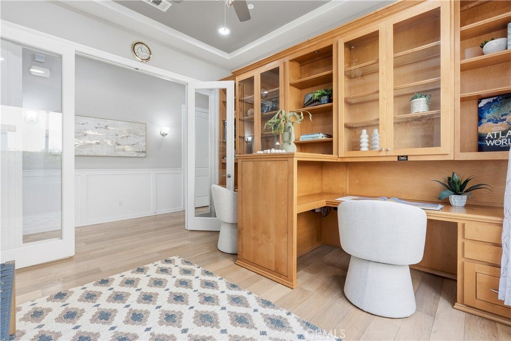 Breakfast Bar, Ceiling Fan(s), Separate/Formal Dining Room, Granite Counters, High Ceilings, Open Floorplan, Pantry, Quartz Counters, Recessed Lighting, All Bedrooms Down, Bedroom on Main Level, Main Level Primary, Walk-In Pantry, Walk-In Closet(s), Built-in Features, Crown Molding, Paneling/Wainscoting, See Remarks, Wired for Data, Wired for Sound
