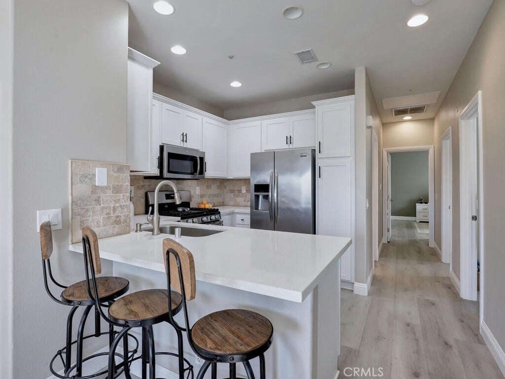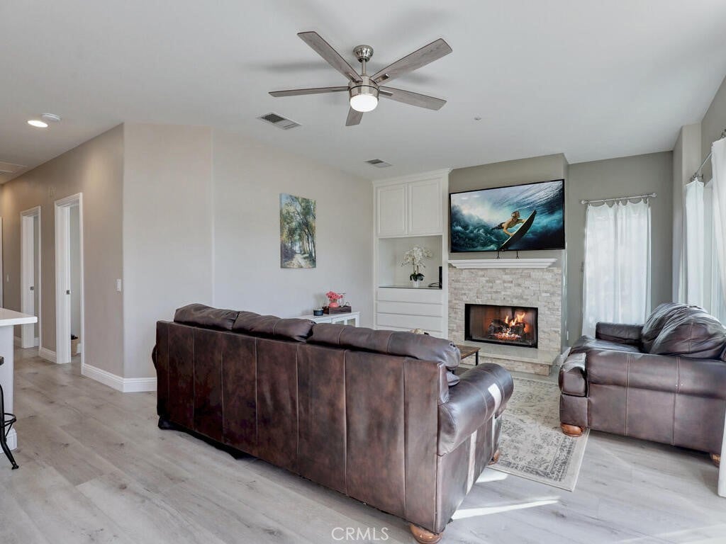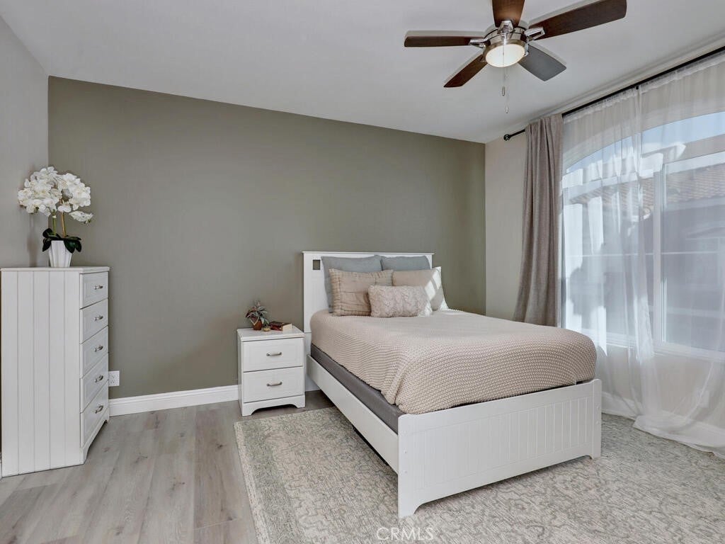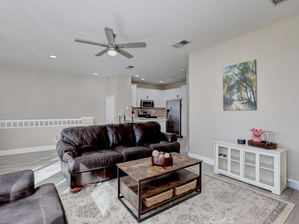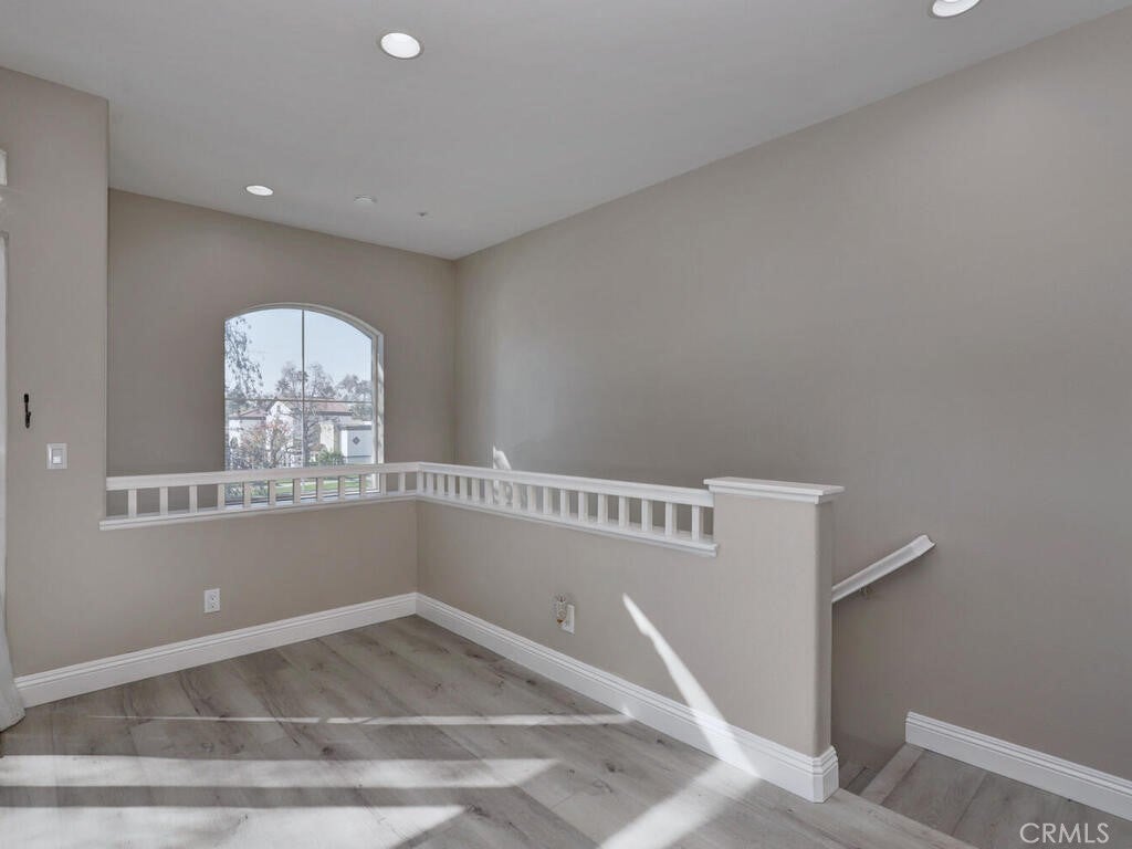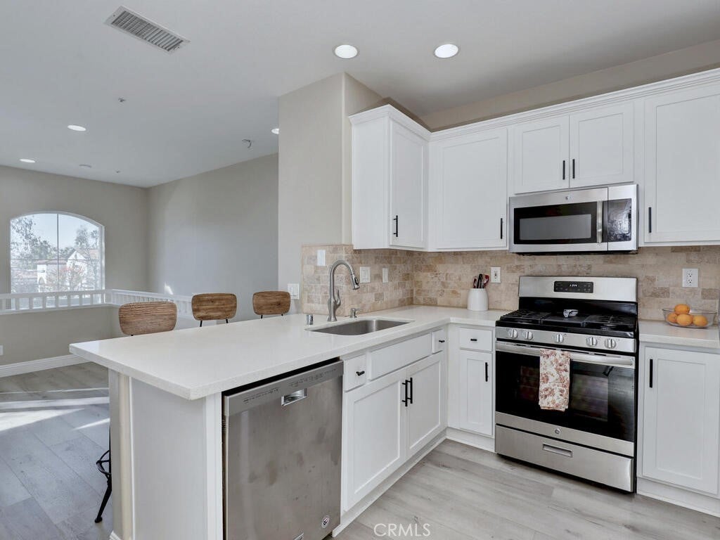 3 Bedroom, 2 full bath Carriage Unit Condo - End unit with no one below or above! Located in the heart of Rancho Santa Margarita. Close to the center of the shops and restaurants, concerts in the park, the Lake, and many areas for all sorts of recreation! This home has been renovated with wood style flooring throughout, updated kitchen and bathrooms, added the third bedroom where the space use to be opened on one wall, new baseboards, ceiling fans added to all rooms! Washer and dryer and Refrigerator all included. High ceilings and lots of windows that bring the natural light in! The garage is located below and provides a private entrance into the foyer of the entrance stairs. The complex offers it's own pool, gym, and dog park but residents enjoy the amenities of the City of RSM has to offer!
