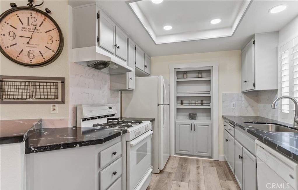 New beginning awaits you in this Spectacular Fully Upgraded property with an abundance of natural light. The open-concept kitchen flows into the dining room and living/family room areas leading to the private balcony. A perfect expression of timeless elegance highlighted by New paint, custom window shutters, new lighting fixtures, upgraded countertops, hardware knobs and backsplash along with custom murphy doors for additional shelf space while adding unique ambiance and privacy in both the living room and kitchen. Inside laundry completes the package. This corner home offers privacy with no one living above or below & includes a one-car garage. The Heather Ridge community offers a friendly atmosphere with amongst beautifully landscaped grounds. Community offers pool, two spas, tennis courts, barbecue area and "HOA pays for trash and water". This is a serene and perfect place to call home centered around excellent schools, restaurants, shopping, safe neighborhoods and easy freeway access. Several parks and trails are in close proximity, easy access to 73 Toll roads, freeways and just minutes away from the most beautiful beaches!
