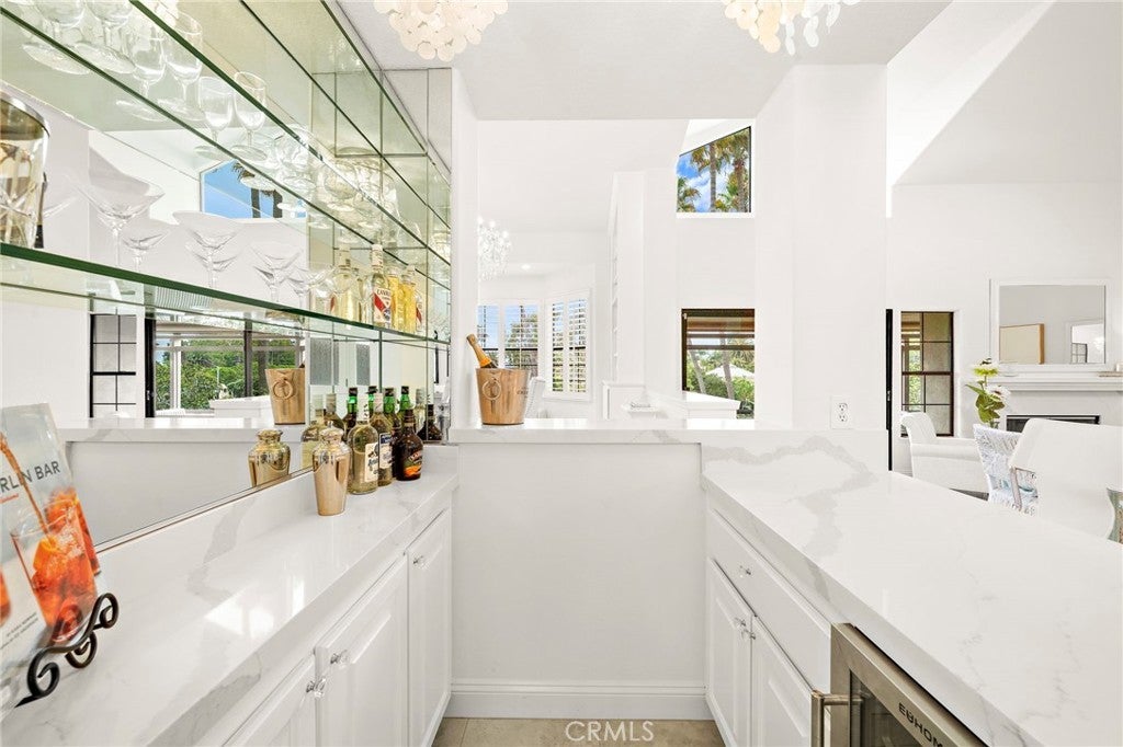 Breakfast Bar, Built-in Features, Balcony, Separate/Formal Dining Room, Eat-in Kitchen, High Ceilings, Open Floorplan, Quartz Counters, Recessed Lighting, Bedroom on Main Level, Main Level Primary, Bar, Beamed Ceilings, Central Vacuum, Crown Molding, Galley Kitchen, Living Room Deck Attached, Multiple Primary Suites, Paneling/Wainscoting, Wet Bar, Wine Cellar