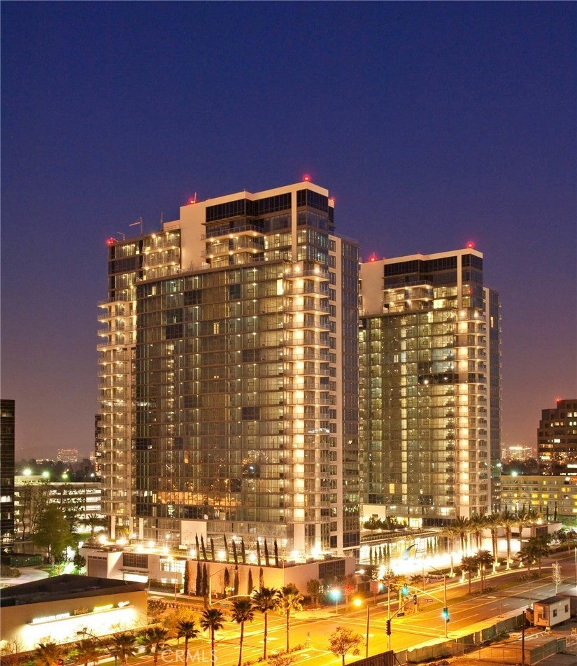 Welcome to Skyline OC — the tallest residential building in Orange County and South Coast's boldest condo transformation, where timeless design meets coastal energy. Ideally located in the heart of Orange County, Skyline OC offers the perfect balance of urban convenience and resort-style tranquility. Just moments from South Coast Plaza, world-class dining, performing arts, and major business hubs, this exceptional address puts everything within easy reach—while still feeling like a private retreat. Residence N807 offers an open split floor plan with bedrooms on opposite sides and expansive living areas framed by floor-to-ceiling windows. This corner home enjoys west-facing views of palm trees and city lights, with a private patio overlooking the amenity level and pool deck—an ideal spot for sunset relaxation. The chef-inspired kitchen features a generous island and premium Viking appliances, while the primary suite includes dual vanities, a soaking tub, and a separate glass shower. Dark wood flooring and abundant natural light complete this elevated home at Skyline OC
