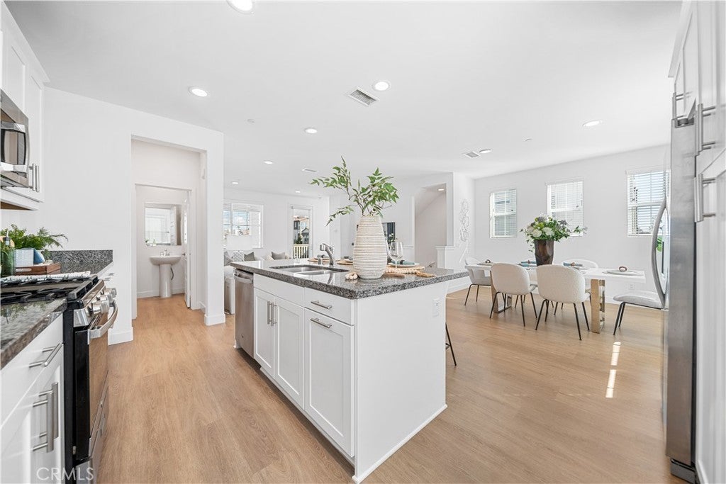 Lovely detached corner-lot condo with mountain views, located in the prestigious The Resort community, offering excellent privacy. Brand-new luxury vinyl plank flooring runs throughout the entire home. Low property tax rate approx. 1%, Low HOA fee: $250 The first floor features a dedicated open space, ideal as a den or entertainment room, seamlessly connected to a private courtyard. On the second floor, the open-concept kitchen, dining area, and great room feel spacious and bright. A large second-floor deck provides the perfect outdoor space for grilling, entertaining, and enjoying gorgeous mountain views. All three bedrooms are located on the third floor. The primary suite offers dual vanities and walk-in closets. Residents enjoy access to the impressive resort-style recreation hub, Club on 6th, featuring a fitness center, multipurpose rooms, swimming pool, BBQ areas, and more—everything you need for active, healthy, and social living. Surrounded by a wide variety of shops, restaurants, and shopping centers. Only a 4-minute drive to Target and 6 minutes to Ontario Mills Mall.