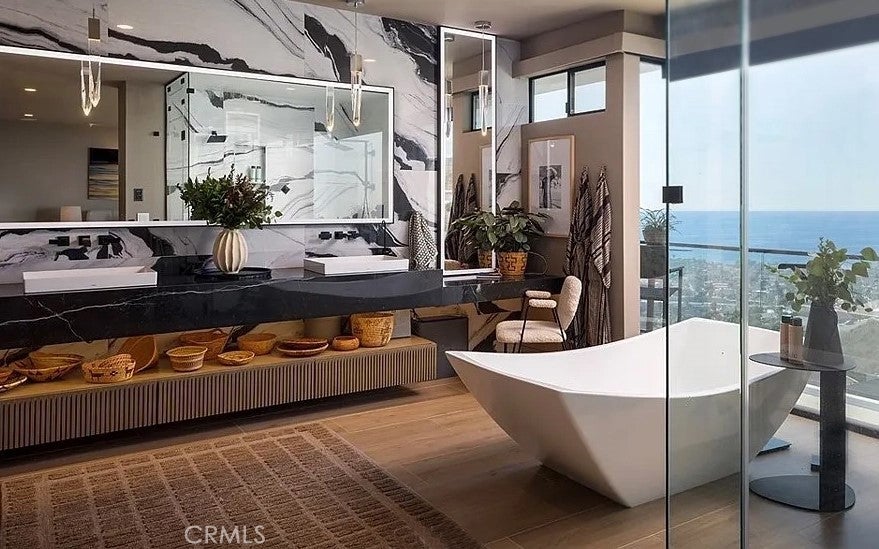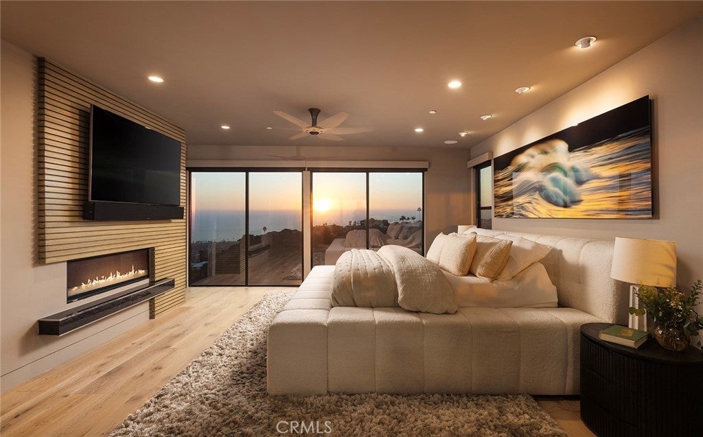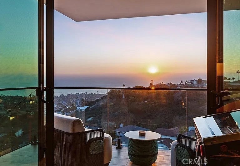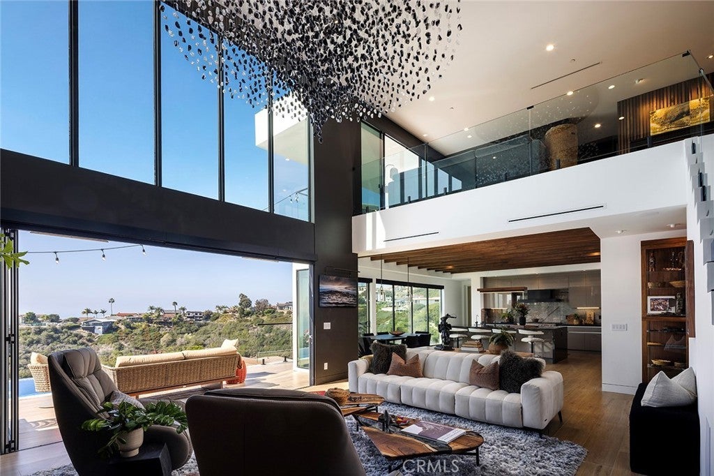 A contemporary masterpiece framed by the Pacific, this architectural coastal retreat redefines modern living high above San Clemente. Every room, every horizon is designed to capture the ocean’s rhythm—expansive, effortless, and quietly extraordinary. Featured on the San Clemente Home Tour as one of the city’s premier luxury residences, it stands as a showcase of innovation, craftsmanship, and design integrity. Spanning approximately 4,232 sqft on a 13,504-sqft lot, the residence features four bedrooms and four and a half bathrooms, each space shaped by intentional design and natural light. Step through the oversized pivot door into a grand two-story great room where an iconic hotel chandelier floats above handcrafted walnut beams. Walls of La Cantina glass vanish with a touch, merging ocean air and modern architecture into one seamless experience. At the heart of the home, the chef’s kitchen blends form and function with a dual-waterfall island, full-size Thermador refrigerator, Miele oven, built-in coffee station, wine fridge, and sleek oak cabinetry—curated for conversation as much as cuisine. Automated Lutron lighting, whole-home audio, and one-touch smart controls orchestrate ambiance throughout. Fifty-seven solar-tinted windows bathe the interiors in soft light, while motorized shades and blackout systems ensure privacy and precision. Six solar battery units and a hillside solar array power both the home and its heated infinity-edge pool and spa, pairing sustainability with sophistication. A main-level ensuite bedroom, ocean-view dining space, and library extend the home’s versatility, while upstairs, the primary suite becomes a private sanctuary—complete with a terrace, soaking tub, steam shower, and floor-to-ceiling windows that dissolve into the horizon. Outdoors, the experience unfolds in layers: an eight-person spa overlooking the coast, a custom kitchen and grill built for entertaining, and peaceful terraces that invite reflection. Hidden within, a discreet safe room and custom cabinetry throughout the three-car garage reflect a life designed in every detail. Powered—literally and poetically—by the sun, this residence embodies a rare fusion of architecture, technology, and tranquility. Minutes from world-class beaches, Dana Point Harbor, and historic San Juan, it is luxury reimagined—a life defined by light, design, and the Pacific itself.