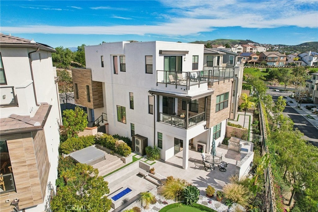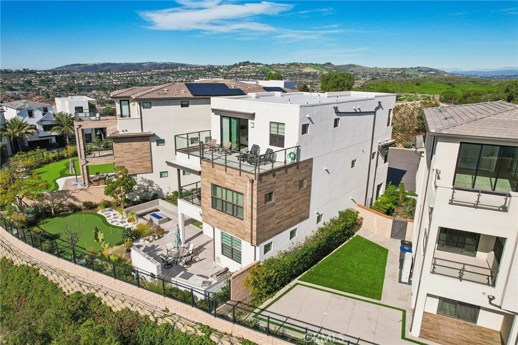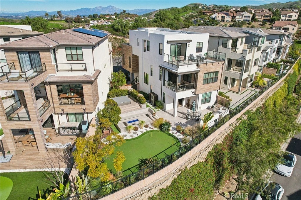 Experience elevated coastal living in this nearly new modern residence, ideally situated on a single-loaded, tree-lined cul-de-sac street within the exclusive Harbor View enclave of the gated Pacifica San Juan community. Built in 2020 and barely lived in, this Toll Brothers masterpiece is set on one of Harbor View’s premier and second-largest lots, enhanced by a $450,000 lot premium, and showcases breathtaking 180+ degree panoramic views of the ocean, white water, Dana Point Harbor, mountains, sunsets, and city lights. Offering nearly 3,100 square feet of refined living space, the home features 4 bedrooms and 4.5 baths. Thoughtfully designed for seamless indoor/outdoor living, the home balances modern comfort with timeless coastal elegance. Over $200,000 in custom landscaping and stonework has created a true resort-style backyard, complete with a built-in BBQ station, fountain wall, fire pit gathering area, golf putting green, and a private outdoor spa positioned on a raised tile deck with a warm, wood-inspired finish—ideal for entertaining or relaxing in a private, resort-style setting designed for comfort and ambiance. The gourmet kitchen anchors the main living space and features white quartz countertops, white cabinetry with custom hardware, a large island with seating, walk-in pantry, and premium KitchenAid appliances. The kitchen opens effortlessly to the living room, formal dining area, and outdoor deck, creating a light-filled space equally suited for everyday living and memorable gatherings. This residence offers two primary suites, including a spectacular top-level retreat with commanding ocean views, a spa-inspired bath, and a sprawling rooftop deck with sweeping coastal panoramas by day and captivating sunsets and evening lights by night. Additional bedrooms are thoughtfully placed, including a guest bedroom on the first level and an upper-level bedroom currently shown as an office. Residents enjoy access to the exceptional Club Pacifica, featuring a beautifully designed clubhouse, well-appointed fitness center, resort-style pool and spa framed by towering palm trees, BBQ areas, and scenic community hiking and biking trails. Ideally located near freeways, Dana Point Harbor, pristine beaches, premier dining, diverse shopping options, and excellent public and private schools—including St. Margaret’s Episcopal School (K–12)—this exceptional home offers an inspired coastal lifestyle for those who demand the very best.