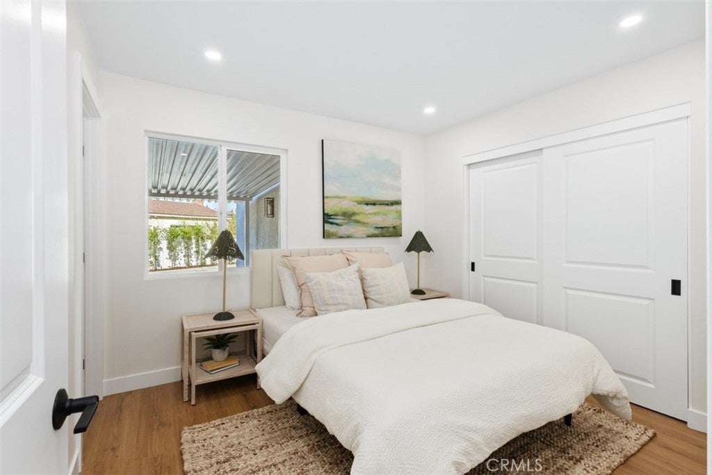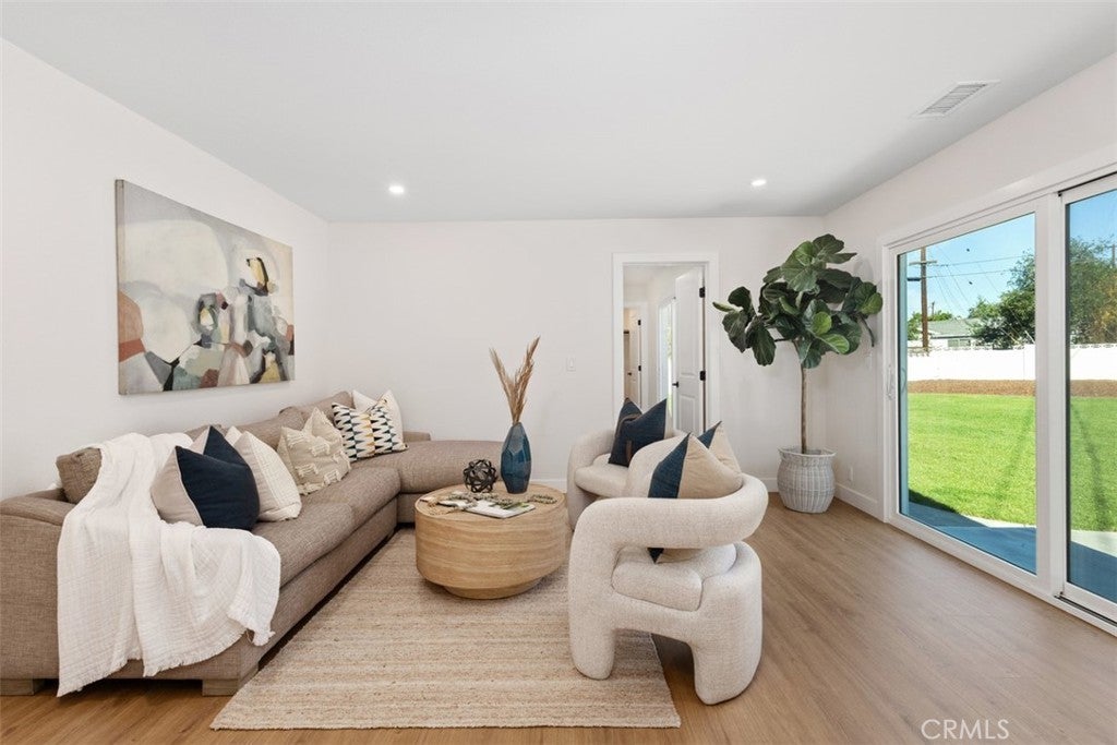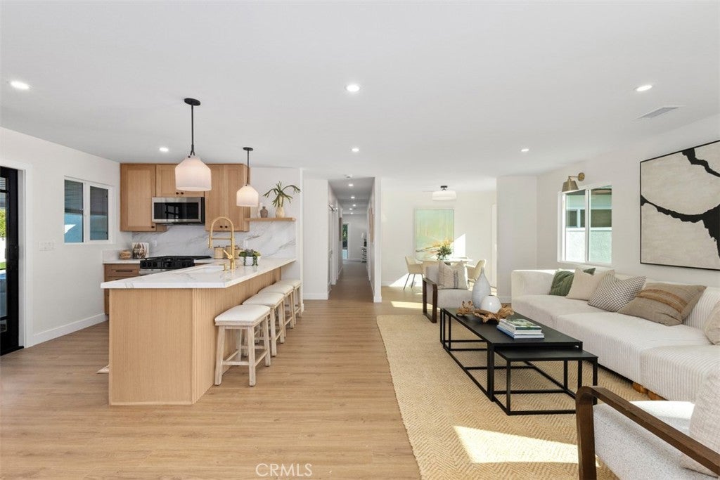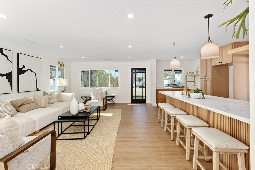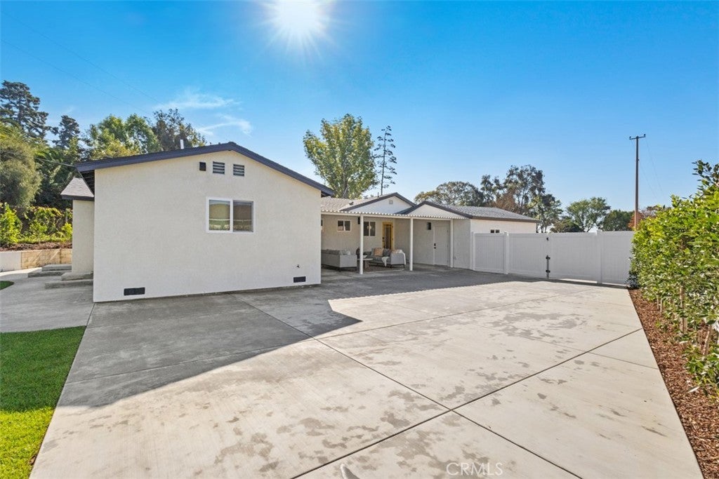 Situated on a large, flat RV parking lot in excess of 12,000 square feet which is SB9 ADU eligible, this fully renovated single story home boasts 672 square feet of Fully Permitted additions and is located on a private Cul-De-Sac street in the Panorama Heights tract of Orange. With 2,014sf of living space, this sun filled and immaculate open concept home features spacious 4 bedrooms, 3 full bathrooms, interior laundry room, and a den area. Step right into the bright, sun filled home with light premium vinyl floors throughout leading into the upgraded kitchen with premium quartz countertops, a large peninsula island, white oak wood cabinets with soft-close hinges, quartz countertops and backsplash, floating shelves, pendant lights, and stainless appliances. Upgrades include a brand-new HVAC system, tile flooring in all bathrooms, study and loft built-ins, neutral paint, upgraded doors, brand new fixtures and hardware, recessed LED lights throughout, and smart irrigation. Thoughtfully huge landscaped outdoor oasis perfect for entertaining and has unlimited potential with plenty of space to build a pool/spa along with an ADU. Zoned to the Orange Unified School District including the K-8 McPherson Magnet School and El Modena High School. A great place to call home, don’t miss out!