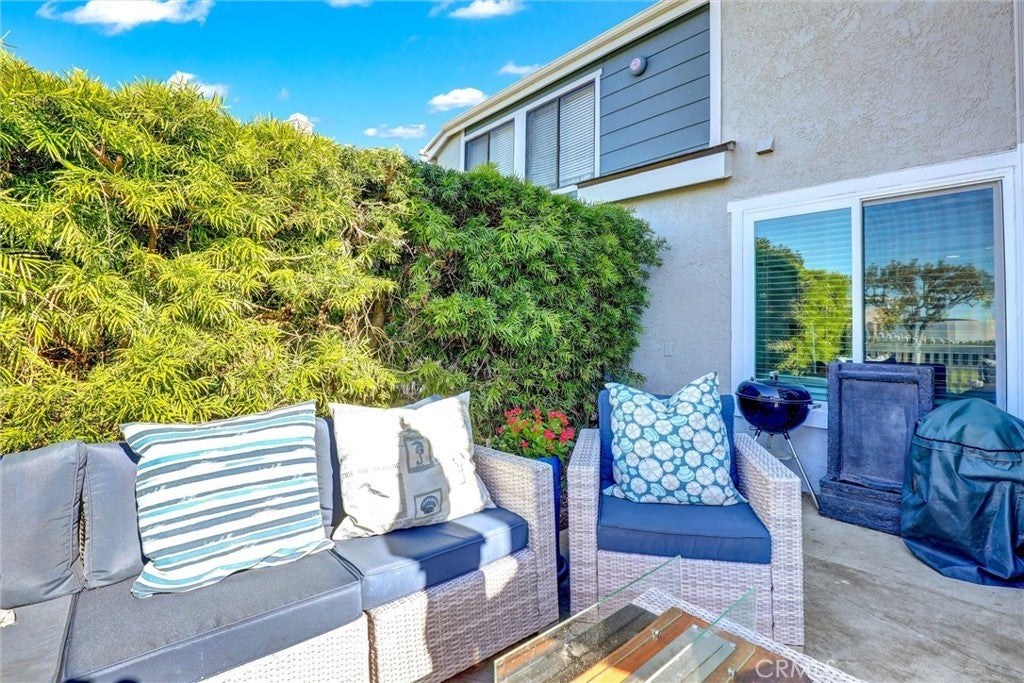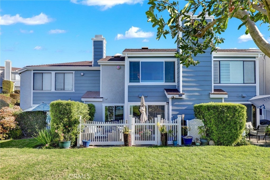 Love where you live! Located in the highly sought-after community of Faire Harbour, this beautifully updated home features 3 bedrooms and 2.5 baths. The interior has been thoughtfully remodeled with vinyl flooring throughout, upgraded bathrooms, recessed lighting, and more. The kitchen offers a cozy breakfast nook, honey maple cabinetry, tumbled travertine backsplash, granite countertops, dual sink, and a serene view of the surrounding greenbelt. A pocket door connects the kitchen to the dining room and opens to the inviting family room, which features a charming fireplace and abundant natural light. Sliding doors lead to the fenced patio, which opens directly to a large, park-like grass patch and lush greenbelt—ideal for outdoor dining, entertaining, pets, or play. Upstairs, the primary suite boasts a peek ocean view, en-suite bath with skylight, separate vanity area, and a walk-in closet. Two additional bedrooms share a full bath; one offers a walk-in closet and the other features a window seat overlooking the greenbelt. The laundry closet is also located upstairs and accommodates full-size units—no hauling laundry downstairs. Thoughtful craftsmanship can be seen throughout the home, including upgraded baseboards, window trim, and a modern stair rail recently installed. Energy-efficient double-paned Milgard windows enhance comfort and efficiency year-round. Additional highlights include a whole-house re-pipe, central heating, and a detached 2-car garage with built-in storage. Community amenities include a fenced pool, spa, and volleyball court. Faire Harbour is ideally situated near top schools, local beaches, grocery stores, restaurants, the outlet mall, and freeway access. The community entrance boasts beautiful ocean views, creating a warm coastal welcome. The HOA covers water, adding extra value and convenience for homeowners. Homes surrounded by greenbelt spaces are highly desirable in Faire Harbour—offering privacy, open space, and a tranquil coastal lifestyle.