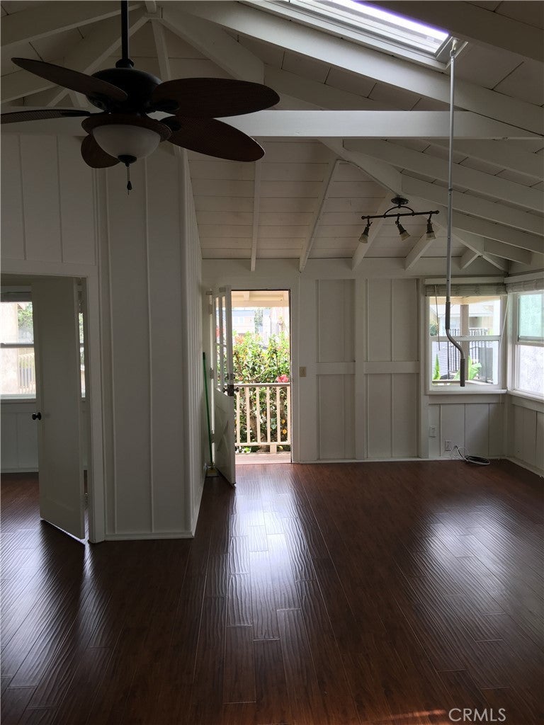 Light and bright two bedroom one bath back unit available in CDM. Close to 2nd Avenue and PCH. This unit has beautiful hardwood laminate flooring and white vaulted ceilings. Washer/dryer and storage are included in the garage along with a designated parking space in the carport. Walk to fine dining and shopping in the Village of Corona del Mar with close access to the Goldenrod walking bridge for easy beach access.
