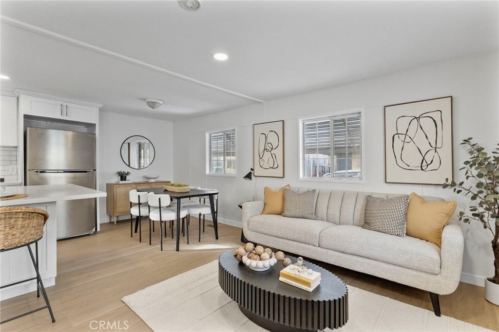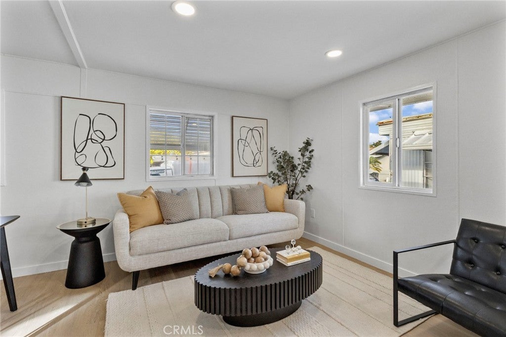 Welcome home to this beautifully fully renovated 3-bedroom, 2-bath manufactured home that is truly move-in ready. Step inside to a bright, open-concept layout featuring brand-new tile and flooring, fresh interior paint, and modern finishes throughout. The stunning kitchen shines with new quartz countertops, sleek cabinetry, and an open flow perfect for entertaining. Both bathrooms have been thoughtfully updated with new vanities and contemporary finishes, offering a clean, modern feel. Located in a well-maintained community with two swimming pools and on-site laundry facilities, this home also offers convenient access to nearby freeways, making commuting a breeze. Stylish, spacious, and turn-key—this is a home you don’t want to miss.