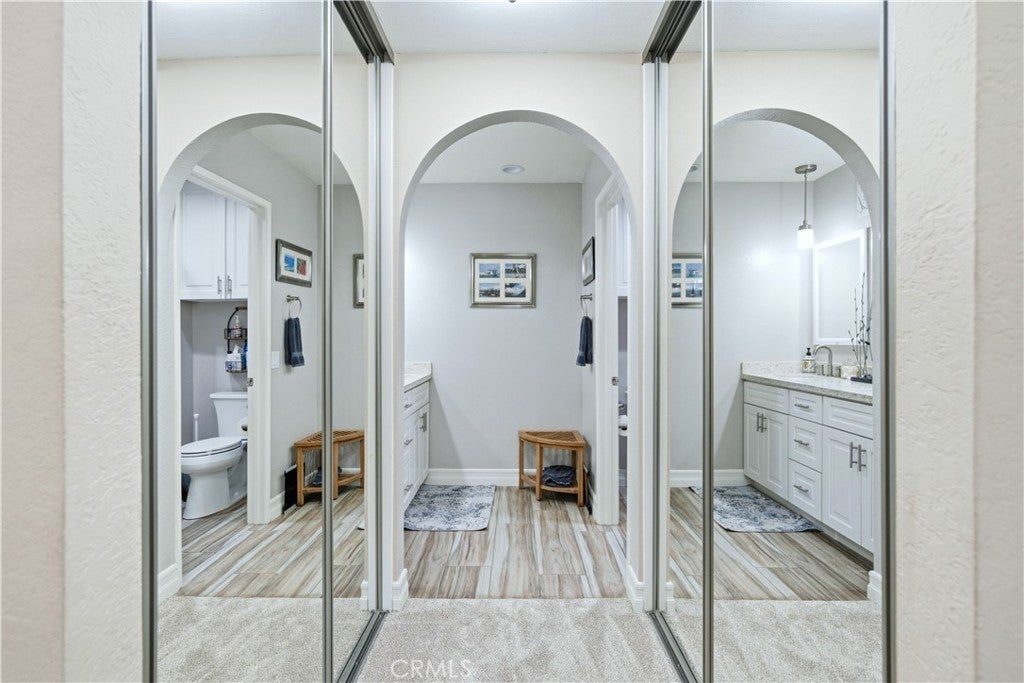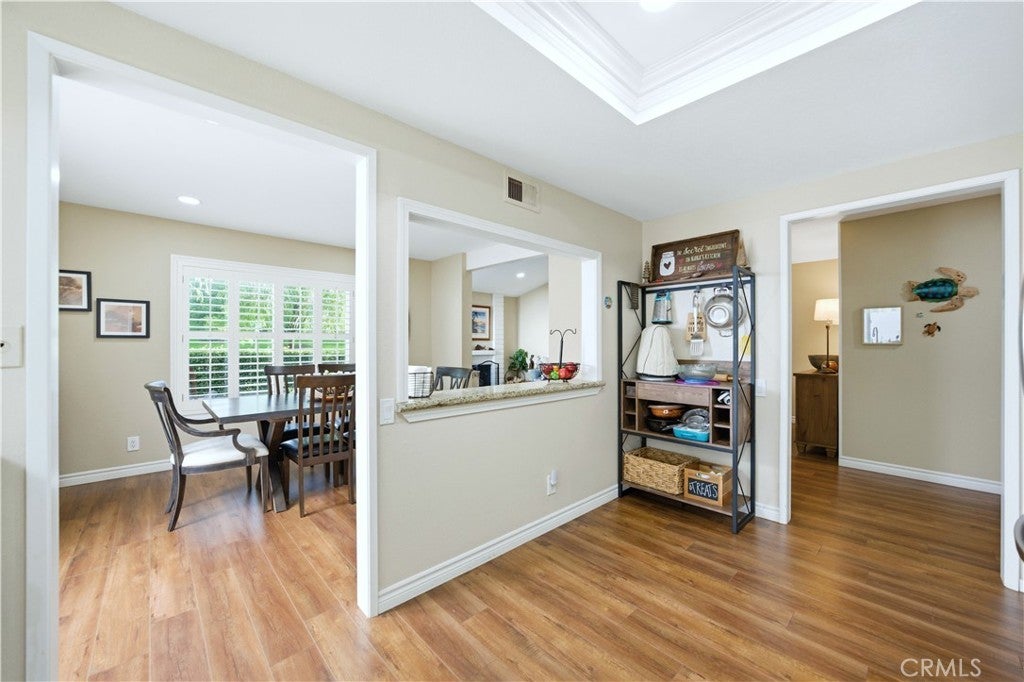 IT IS SO PEACEFUL AND QUIET, AND THERE IS THAT SENSE OF SECURITY.... When asked what the seller most enjoyed about this home; that was the answer. She could have said the fabulous location as an end unit on a cul-de-sac street with a huge greenbelt and a view of a park and trees near the main entrance and a Community Center. She could have said the convenience of a single story home. She might have said the remodeled bathrooms with quartz counters and backsplash, the tile showers with dual barn style sliding glass doors, soft close/dovetail joint construction shaker style cabinet drawers, the tile flooring or the recessed can lighting. I may have emphasized the fresh paint, the textured ceilings, the Decor plugs and switches, the raised panel doors, the oversized baseboards, the engineered wood flooring, the plantation shutters, the dual paned vinyl windows and sliders or opening up the wall between the kitchen and the dining room to help create that popular great room affect. The third bedroom has been converted to a den. Of course, everyone knows about the Casta del Sol lifestyle and the magnificent amenities this 55+ community has to offer. It is hard to find something you cannot do. Normal things like tennis, swimming, spa/hot tub, pickleball, clubhouse and gym/exercise/weight room are a given. Card rooms, billiard rooms, craft rooms, recreation rooms, lawn bowling, gardening, a library, numerous clubs and activities all make it easy to get out and socialize if that is your interest. Bang for your buck? Your HOA dues include community management, front yard maintenance, exterior painting and trash pickup which all contribute to reduced stress and a carefree environment. Membership to Lake Mission Viejo with its Summer Sunset Concert Series, fireworks display, boating, swimming, occasional fishing and the annual "Taste of the Lake" is included. And we have not even begun to talk about living in Mission Viejo and shopping at Mission Viejo Mall, the convenience of the nearby Mission Hospital with its Trauma Center, the opportunities for travel using the Metrolink or John Wayne Airport, the proximity of world famous destination beaches or the equal distance to cultural and sporting events in either Los Angeles or San Diego. Do yourself a favor and come take a look. You won't be sorry if you do.