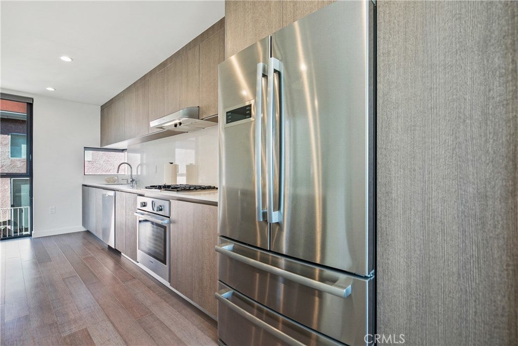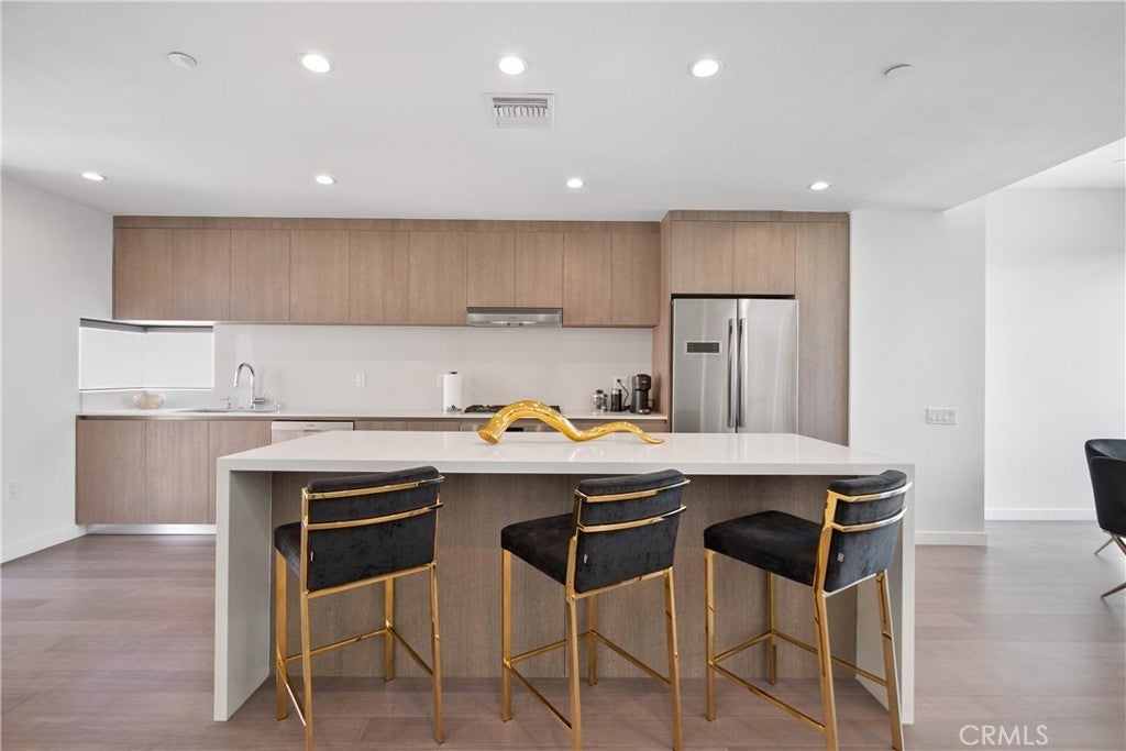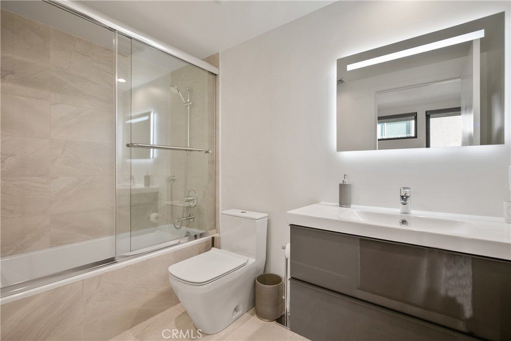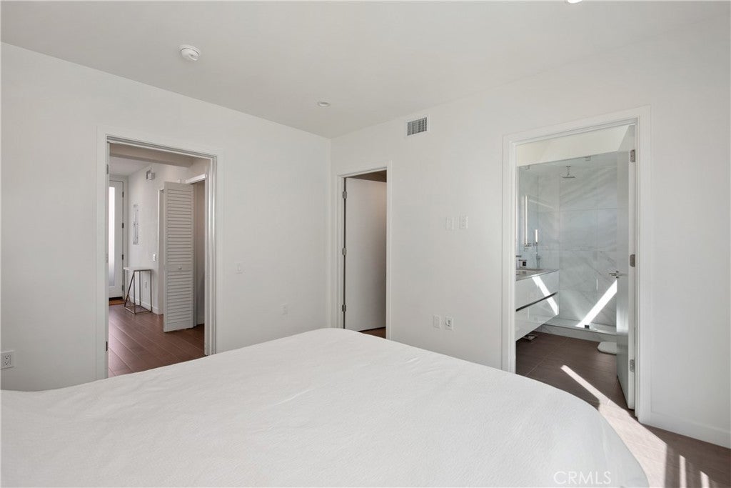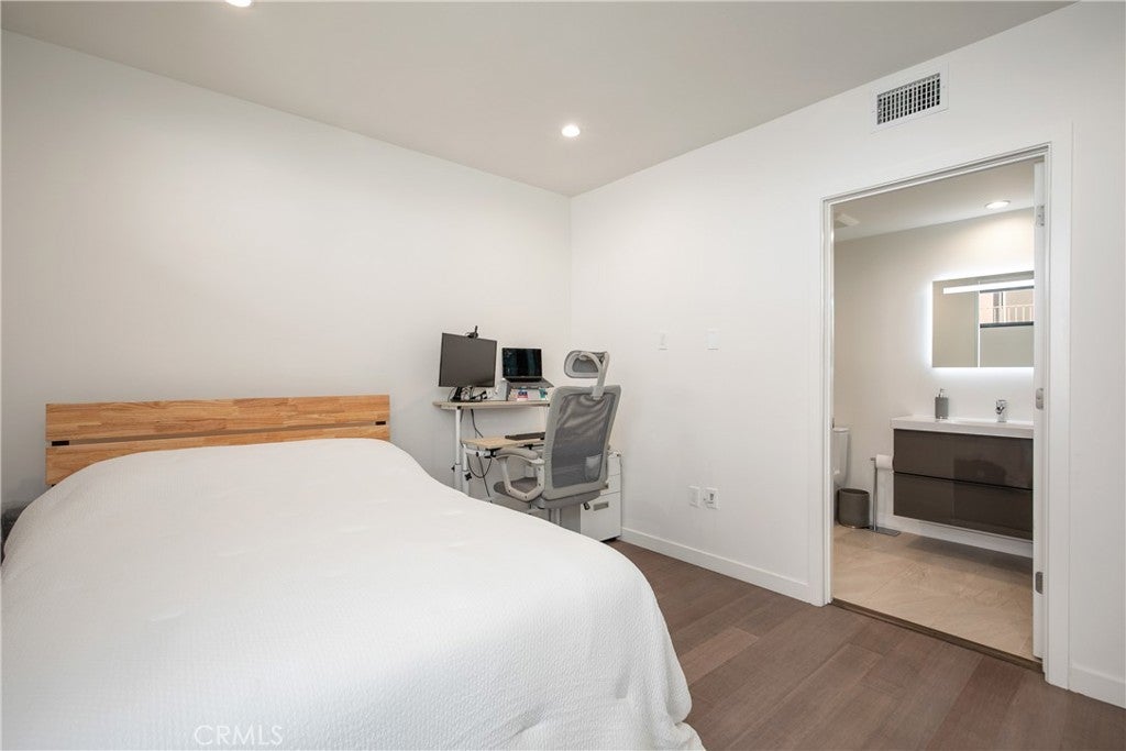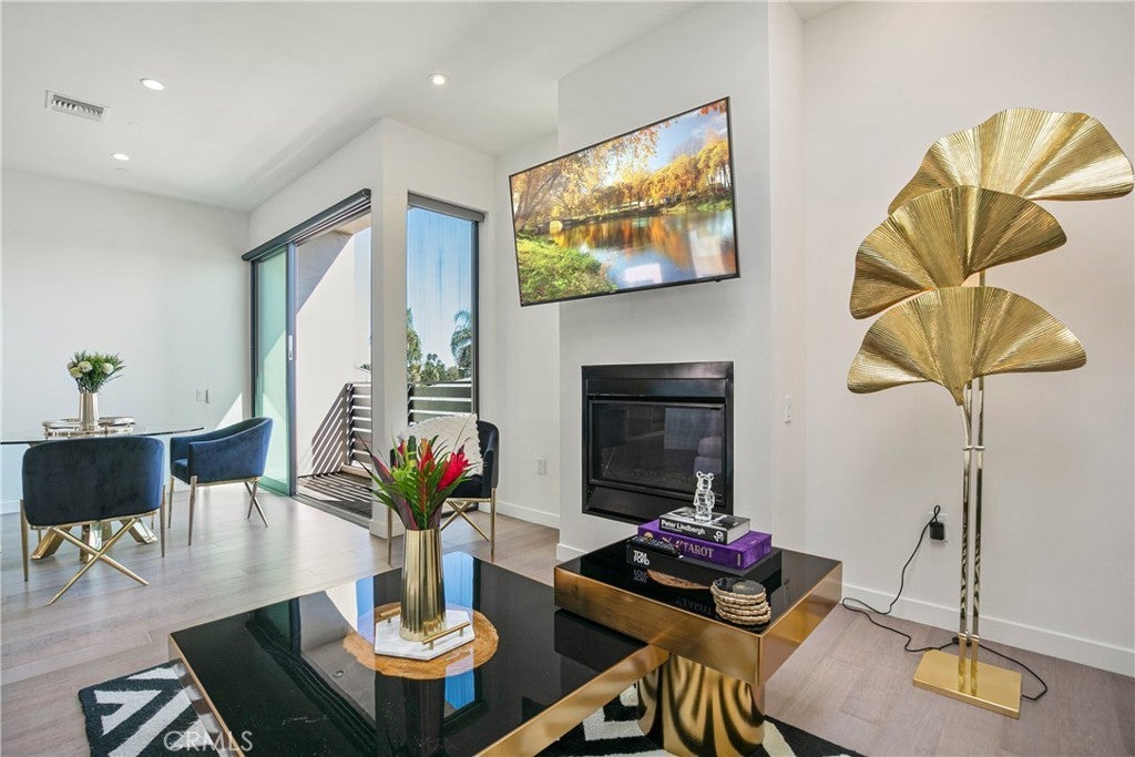 Welcome to 823 N Fuller Ave #E, A modern townhouse-style condo in the heart of West Hollywood, offering three levels of light-filled living with floor-to-ceiling windows and an open-concept layout. The entry level features a laundry area, storage, and two en-suite bedrooms, including a spacious primary suite with a walk-in closet and a large bath with dual-sink vanity. Upstairs, the main living level flows seamlessly through the living and dining areas into the chef’s kitchen. Complete with a contemporary fireplace, skylight, expansive island, extensive cabinetry, and Bosch stainless steel appliances, plus a convenient powder room for guests. Top it all off with a private rooftop patio with city & hill views, ideal for dining and/or entertaining. Quiet street location north of Melrose and west of La Brea, moments from Poinsettia Park, Trader Joe’s, Melrose shopping/dining, and the best of WeHo/Beverly Grove, with easy access to Santa Monica Blvd and the Sunset Strip.