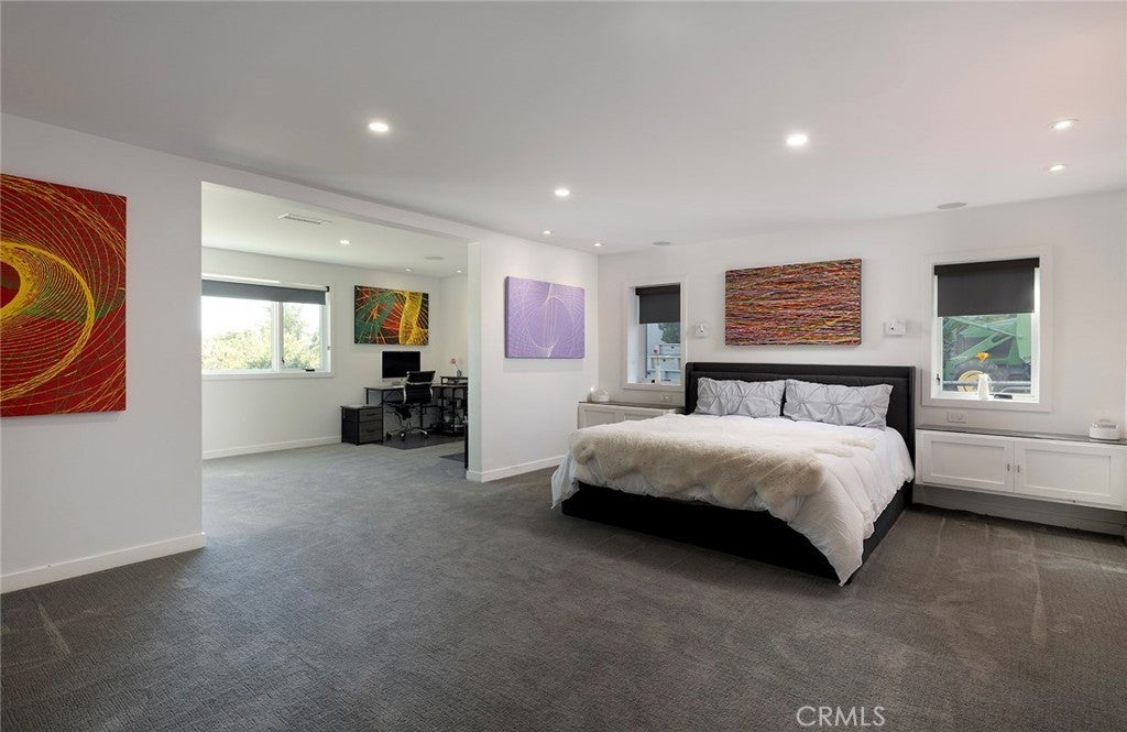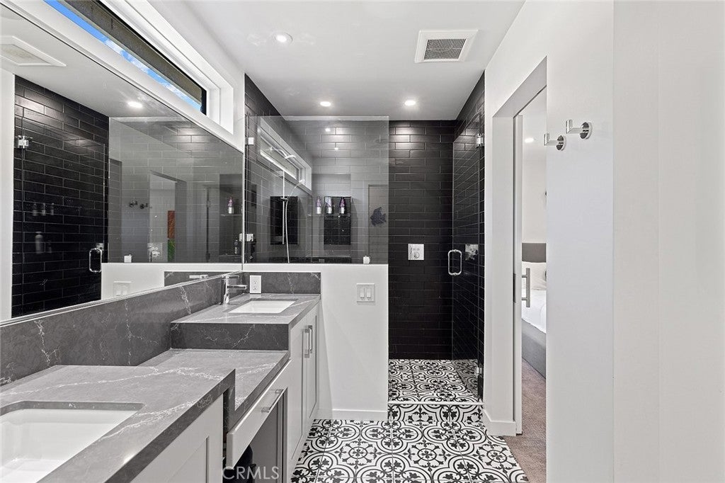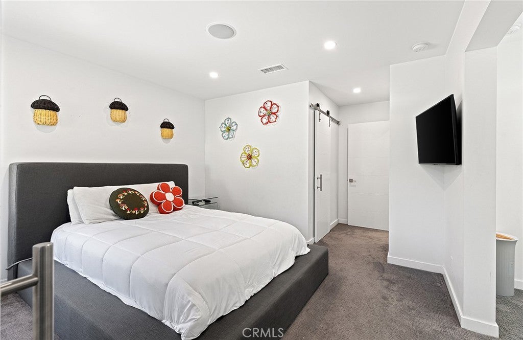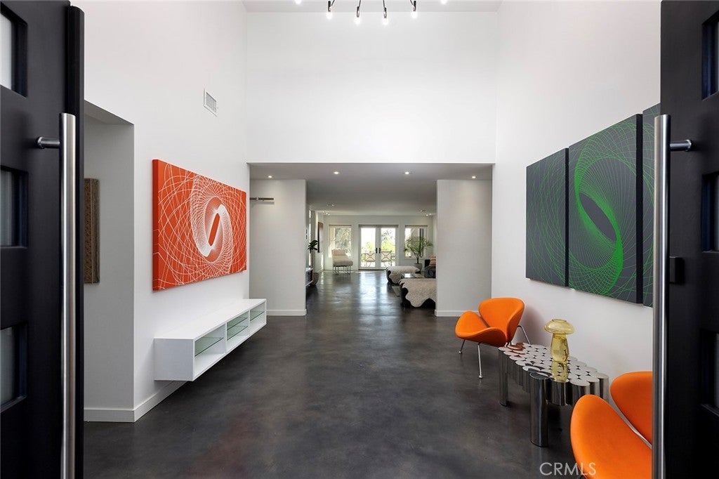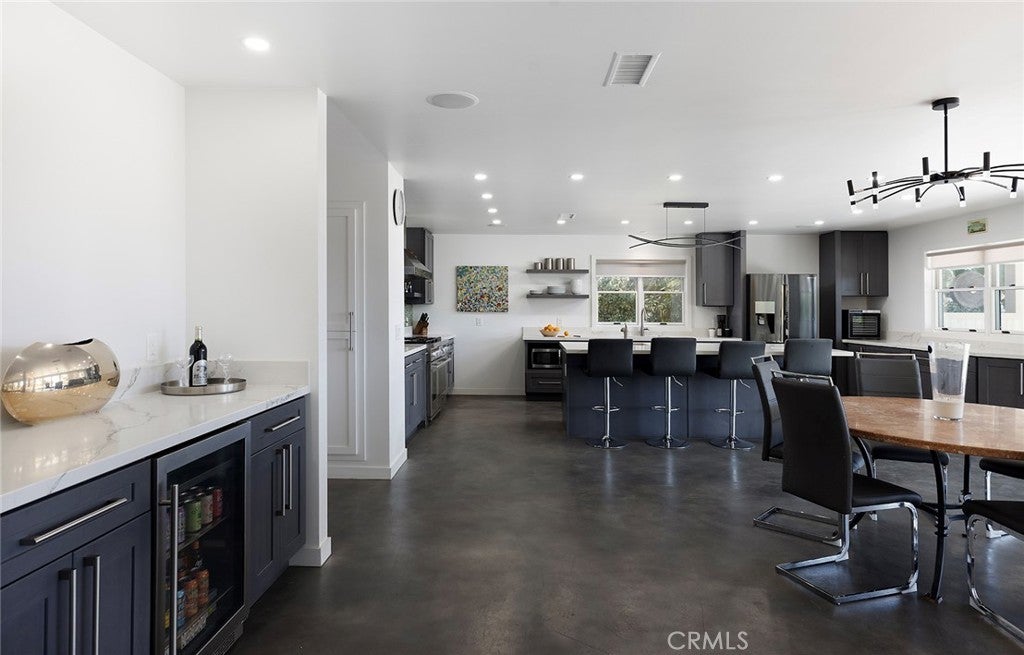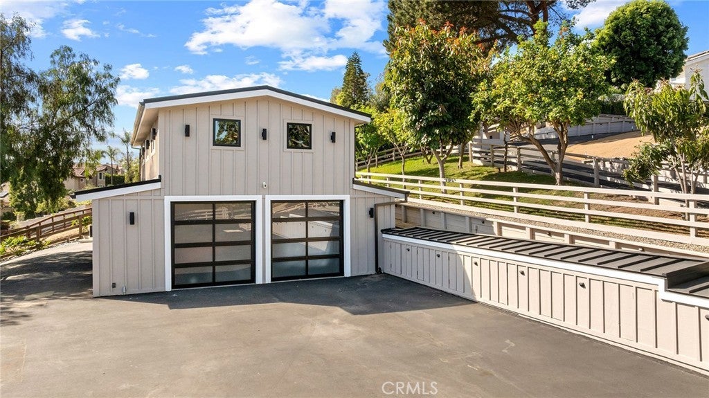Rebuilt in 2024, this modern-luxury home in prestigious Nellie Gail Ranch offers the ultimate equestrian lifestyle, complete with direct access to horse trails and an impressive 1,700-square-foot converted barn with an upstairs apartment. Situated on nearly an acre, this sophisticated residence combines contemporary elegance with unparalleled outdoor amenities. The 4,100-square-foot, single-level main house showcases chic design with polished concrete floors, stylish light fixtures, 9-foot ceilings, and abundant natural light flowing through the grand two-story entryway. The open-concept kitchen features quartz countertops, Shaker cabinetry, and a large island with a built-in dog feeding station, while bifold doors seamlessly connect to the patio for indoor-outdoor living. A dry bar with beverage refrigerator and matching island adds to the home's entertaining capabilities. Six bedrooms provide exceptional flexibility, with the primary suite offering a bonus office retreat, built-in cabinetry, and a spa-like bathroom with an upstairs dressing space spanning the full attic. Multiple bedrooms also open directly to exterior spaces for private outdoor access. Updated modern systems include zoned HVAC with two condensers plus two upstairs heat pumps, tankless water heating, PEX piping, water softener, smart lighting, and Sonos sound throughout. The property's standout feature is the remarkable barn with a fully renovated 600-square-foot apartment above, complete with a separate entrance, plus an office, craft room, workshop, and storage below. The equestrian-zoned lot provides direct trail access and includes thoughtful amenities like RV parking, a dog run, chicken coop, and storage sheds. Mature landscaping with 30 fruit trees and Cyprus privacy screening frames the generous patio where stunning southwestern sunset views unfold over rolling hills. The property is even pre-plumbed for pool and spa installation. Nellie Gail Ranch offers exceptional value with low monthly HOA fees covering security, over 25 miles of riding trails, and membership to the swim, tennis and pickleball club, plus access to ‘The Watering Hole’ restaurant and exclusive community events. This one-of-a-kind property is truly a must-see!