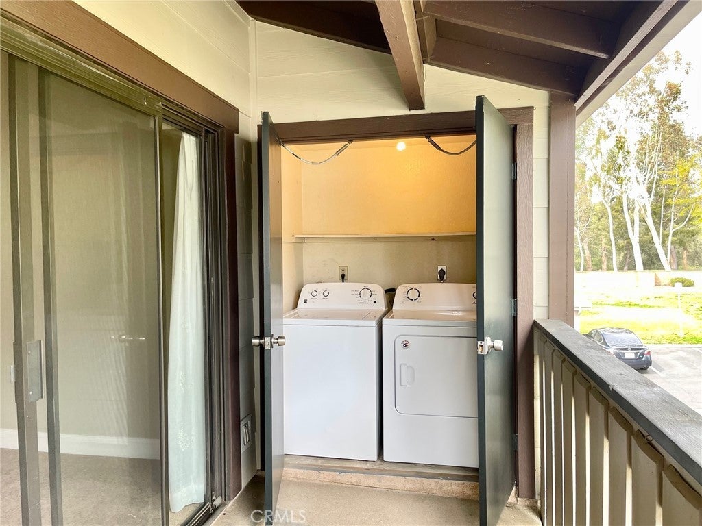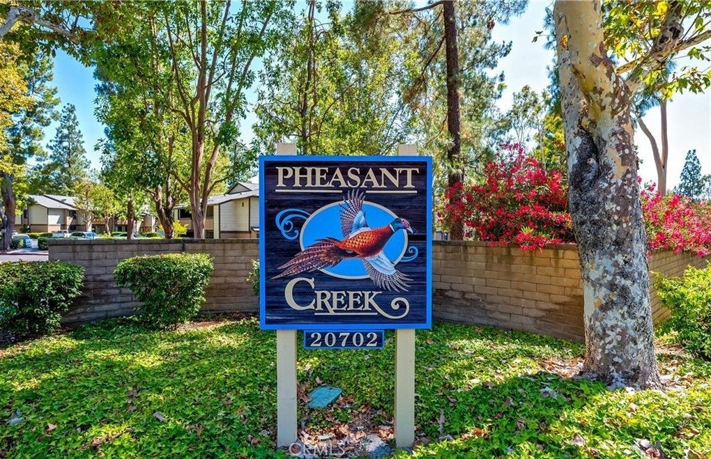 Spacious top-level end unit in Pheasant Creek. Enjoy the tranquil feeling of duck-filled man-made ponds and creeks. The living room has a vaulted ceiling and crown molding. Fresh paint and new kitchen appliances. Large one-bedroom with a walk-in closet. Balcony with laundry closet, the unit includes the Washer and Dryer. Eating area off the kitchen, New refrigerator, stove, dishwasher, and microwave included. One car garage and 1 parking permit. The association covers trash and water. Newer carpeting. The community features include tennis courts, a basketball court, and 3 pools. Pheasant Creek is close to the 241, shopping, and nearby biking/hiking trails. The tenant is to carry renters' insurance. This is a non-smoking unit.
