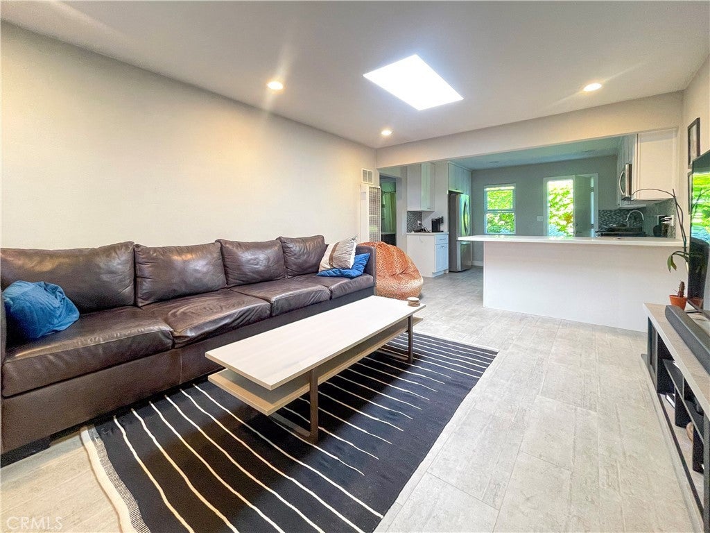 Perfectly located in the heart of Downtown San Clemente, this remodeled 2 bedroom, 1 bathroom apartment is just two blocks from Avenida Del Mar shops, restaurants, and the San Clemente Pier. The light filled interior features an open layout with modern porcelain tile flooring, newer windows, and a skylight that brings in abundant natural light. The updated kitchen offers stainless steel appliances, stone countertops, upgraded backsplash, and soft close cabinetry. The remodeled bathroom includes marble shower walls and custom tile finishes. Additional highlights include a private one car garage with driveway parking and access to a shared laundry room with app enabled coin machines. Enjoy an unbeatable location close to the 2.5 mile beach trail, world class surf, and all that San Clemente coastal living has to offer.