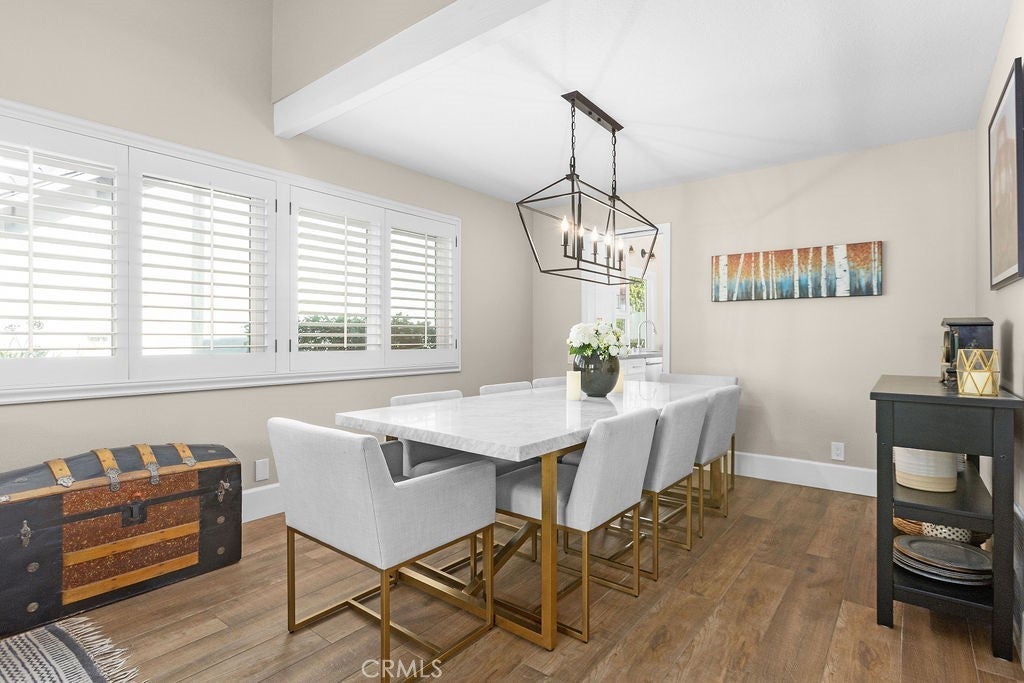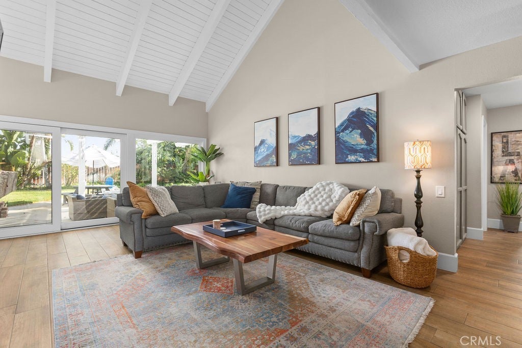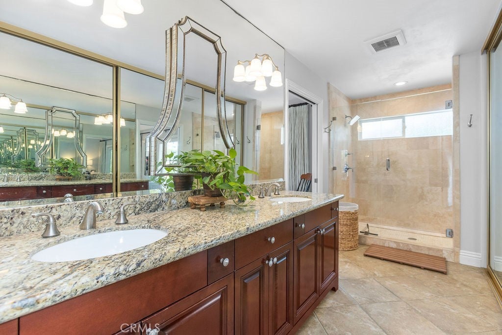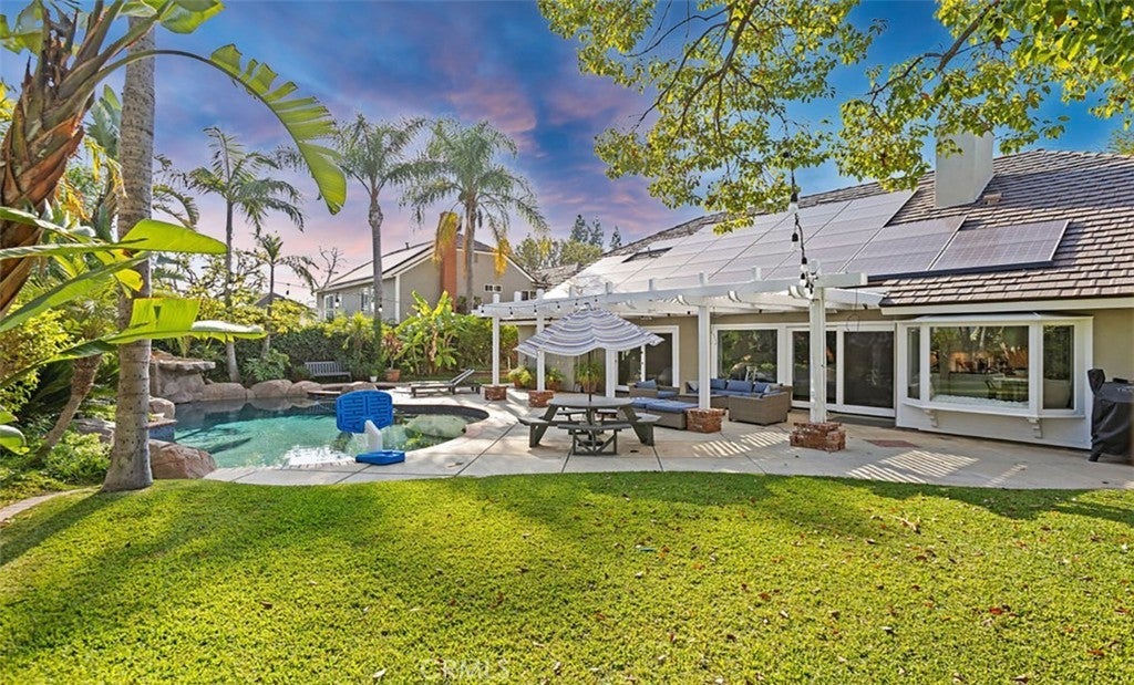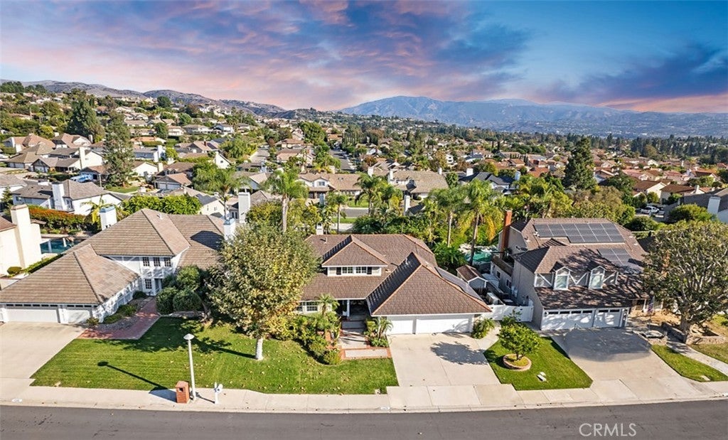 There’s a certain feeling you get when you pull up to this address. Something calm, something steady, something that reminds you why so many people choose Yorba Linda to plant roots. The front yard sets the tone right away with soft greenery and clean lines, giving the home a sense of ease before you ever step inside. Open the front door and the view stretches past the living space toward a backyard built for gathering. The wide plank wood styled tile draws you in as sunlight pours through the front windows. Just off to the side, the living and dining rooms form the start of the home’s heartbeat. Rooms made for family dinners, holiday stories, and quiet evenings. Move through the dining room and the kitchen opens up like a reveal. Bright cabinetry reaches the ceiling, with glass front uppers that turn your favorite dishes into part of the décor. The appliances fit the chef inspired space, including a 6 burner Wolf range, KitchenAid French door fridge, and matching dishwasher. Under cabinet lighting warms the black counters, and the farm sink sits in front of a picture window that pulls the outdoors into your morning routine. A spacious island anchors the room with a built in drawer microwave that keeps everything tucked neatly away. The kitchen flows into a high ceiling family room where everyone naturally ends up. Pick up a drink from the dry bar, settle in near the stacked stone fireplace with its reclaimed wood mantel, and let the firewood nook add that bit of everyday charm. The home offers rare flexibility with two primary suites. One sits downstairs with direct access to the yard, plus a sleek bath featuring a dual head shower and a granite double vanity. Two more bedrooms on this level share a thoughtfully designed bath with another double vanity. Upstairs, the second primary suite brings its own sense of privacy, right next to a bonus room filled with natural light. There is an additional smaller room on this level along with direct attic storage. Step into the backyard and the rhythm of the home shifts again. Lush greenery wraps around a rock accented pool with a waterfall that sets the soundtrack for warm afternoons and weekend lounging. You are part of a community known for safety and a small town feel. Families love the award winning schools, from Fairmont Elementary to Yorba Linda High, and the parks, trails, and sports facilities are part of everyday life. Coffee spots, grocery stores, and restaurants sit only minutes away.