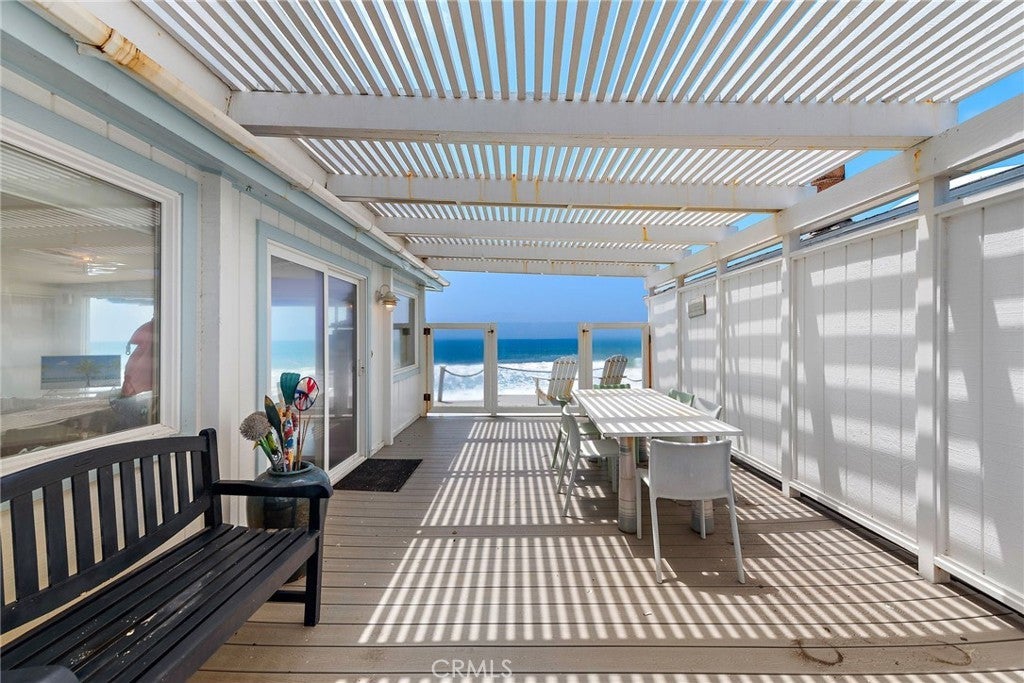 Unobstructed on-the-beach views extending from San Clemente’s famous pier to the towering Dana Point Headlands set the scene for outstanding oceanfront living at this classic home in the private community of Capistrano Shores. A sunny patio introduces the single-level residence, which welcomes abundant natural light and breathtaking whitewater, Catalina Island and sunset views through massive floor-to-ceiling windows in the living room. Approximately 1,000 square feet, the open-concept design makes it easy to entertain by erasing boundaries between the kitchen, living and dining rooms. A peninsula bar for serving up appetizers and enjoying morning coffee opens to the living room from the kitchen, where white Shaker cabinetry, low-maintenance contemporary countertops, a Bosch dishwasher, and a range with smooth cooktop are on display. Two bedrooms and two baths lend versatility to the home, which is also appointed with high ceilings and woodgrain laminate flooring. Nearly 2,265 square feet, the homesite reveals a beach-front patio with retractable awning and a coveted location within Capistrano Shores. One of San Clemente’s most sought-after addresses, the seaside enclave is moments from miles of beach trails, shops and restaurants along Avenida del Mar, Dana Point’s beautifully revitalized harbor, famous surf spots, scenic neighborhood parks and the Ole Hanson Swim Club.