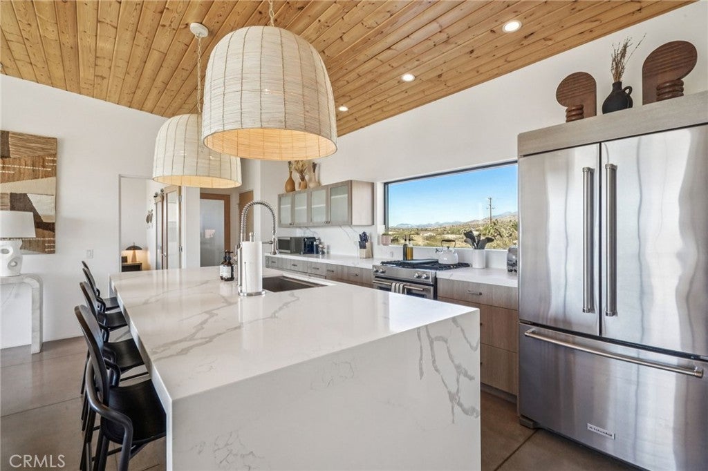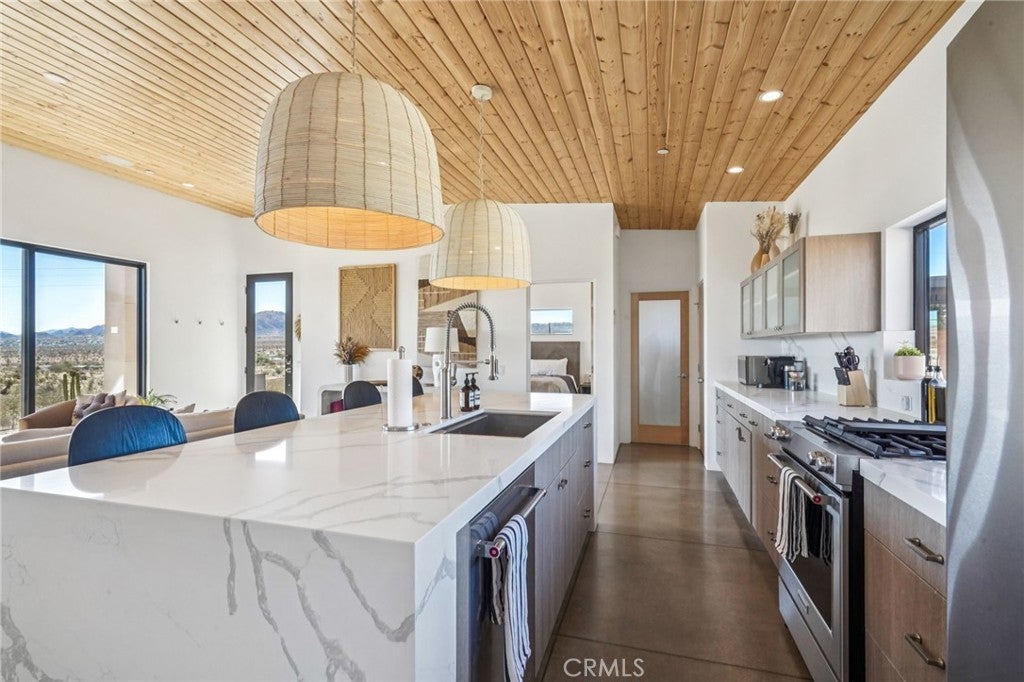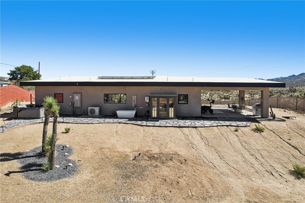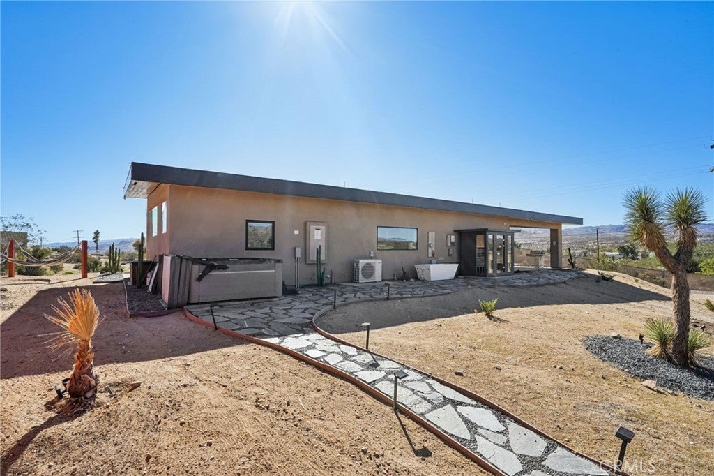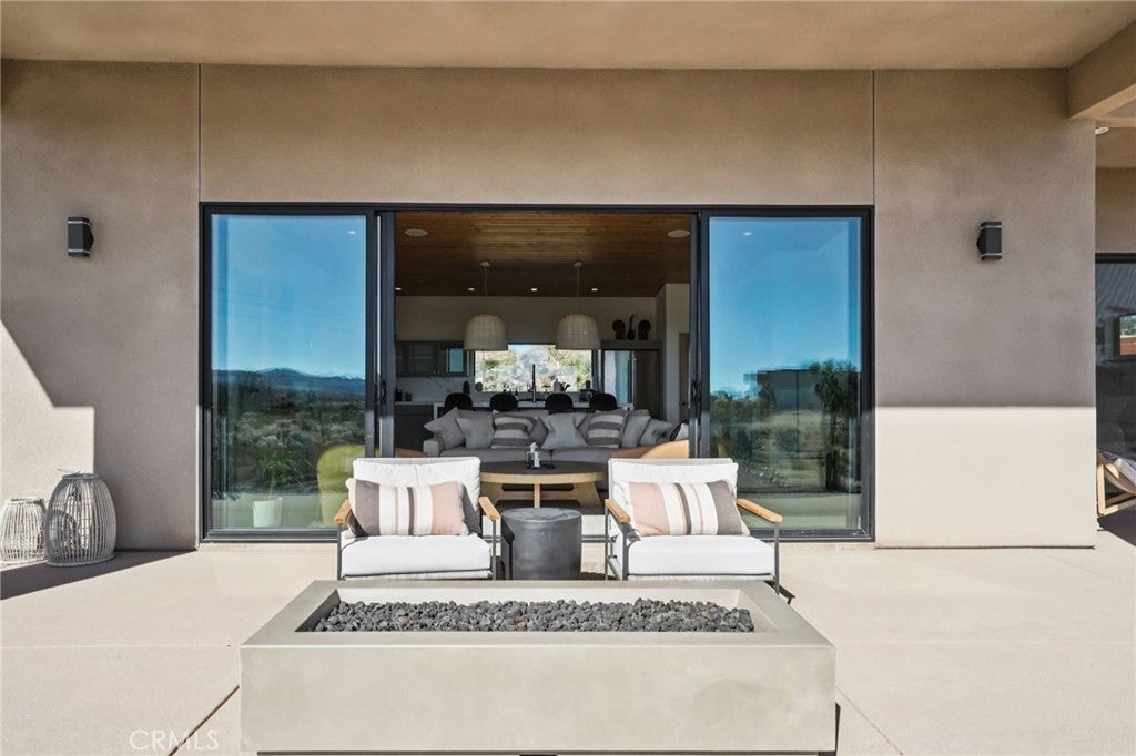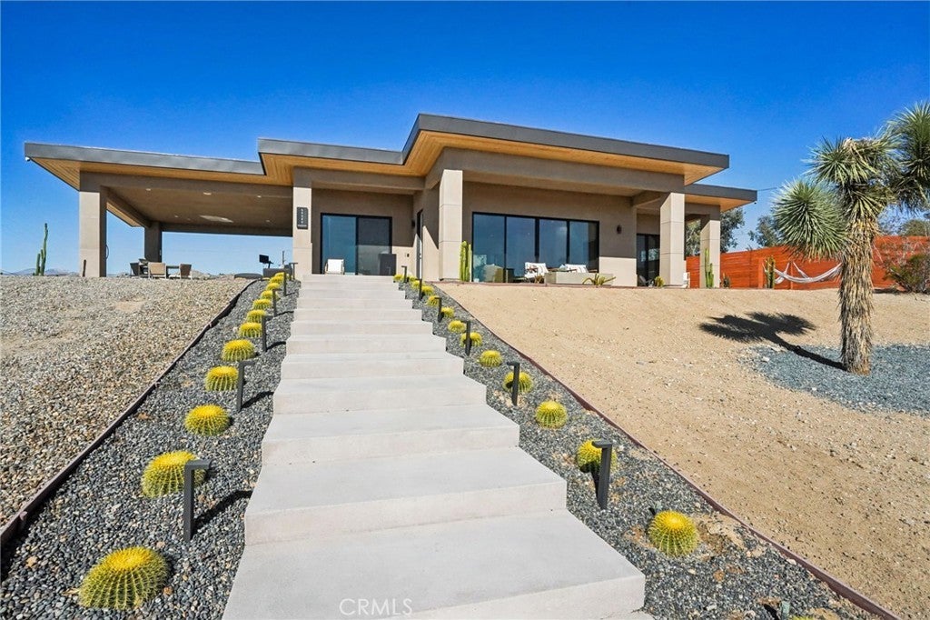 Welcome to 59080 Nelson Avenue — Very strong Airbnb home, with over $91,000 of short term rental income for the 2025 calendar year. A newly constructed 2-bedroom, 2-bath modern desert retreat built in 2023, perfectly positioned in the sought-after Yucca Mesa neighborhood, just minutes from Joshua Tree National Park, Pioneertown, and downtown Yucca Valley’s shops and restaurants. This exceptional home seamlessly blends sophisticated design, smart technology, and serene desert surroundings for the ultimate indoor-outdoor lifestyle. The property is equipped with solar panels, providing energy efficiency and sustainability year-round. Currently operating as a highly successful Airbnb with numerous positive reviews, the home offers both investment potential and luxurious livability. Enter through the automatic gate into a fully enclosed property surrounded by a 10-foot wood privacy fence and lush, drought-tolerant landscaping with Bluetooth-controlled irrigation. Outdoor spaces were designed for relaxation and entertainment, featuring a custom deck, cowboy pool with lighting, Plunge cold plunge, jacuzzi, Clearlight UV sauna, gas fire pit, and RH fountain. Enjoy music through the outdoor SONOS speakers or unwind in one of the hammocks while taking in panoramic desert views. Every detail has been thoughtfully curated to create a seamless blend of comfort, privacy, and luxury. Whether as a full-time residence, weekend escape, or high-performing short-term rental, 59080 Nelson Avenue captures the essence of elevated desert living — where tranquility meets modern design, just moments from Joshua Tree.