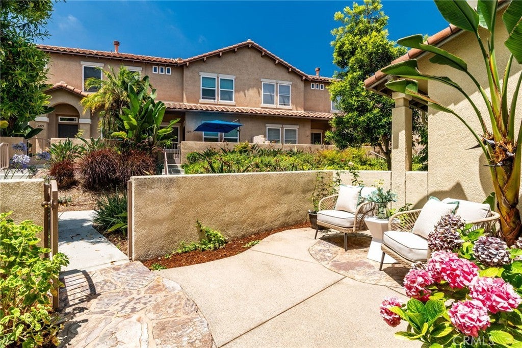 Tucked into the sought-after Rancho Carrillo community in Valencia, this stylish 2-bedroom, 2.5-bath townhome blends comfort, functionality, and an unbeatable location. Inside you’ll find a bright, open layout where the kitchen, dining area, and living room flow together, creating an ideal space for everyday living and entertaining. A charming fireplace anchors the living area, adding warmth and character. Step outside to your private, sun-filled front patio—a perfect spot to relax, enjoy your morning coffee, or unwind at the end of the day. The main level also features a guest powder room and direct access to the attached two-car garage, complete with EV charging for modern convenience. Upstairs, both bedrooms are spacious and well-appointed, each offering its own walk-in closet and en-suite bathroom for privacy and comfort. Between the bedrooms is a versatile nook, ideal for a home office, study area, or reading space, along with a full-size indoor laundry area. The home has been well cared for and is move-in ready, making it easy to settle in and start enjoying everything the neighborhood has to offer. Residents of Rancho Carrillo enjoy access to resort-style pools and spas, BBQ and picnic areas, playgrounds, and lush greenbelts. Just minutes from Bressi Ranch and San Marcos shopping centers, scenic hiking and biking trails, this location offers a rare combination of peaceful surroundings and everyday convenience. A wonderful opportunity to own in one of Carlsbad’s most desirable communities.