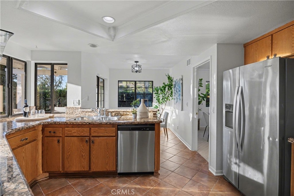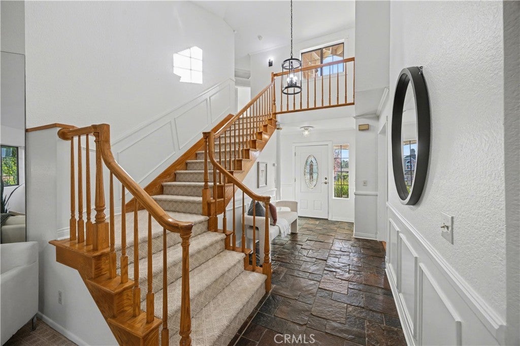 Gorgeous family home nestled on a quiet interior street in one of Mission Viejo’s most sought after neighborhoods with very low HOA. This spacious 4 bedroom 3 full bath residence offers approximately 2,360 sq ft of well designed living space, an outstanding floorplan, and fabulous curated finishes throughout. An impressive formal entry welcomes you with rich stone flooring, soaring vaulted ceilings, and elegant wainscoting, complemented by a contemporary chandelier. The beautiful kitchen opens seamlessly to the family room with fireplace and casual dining nook, featuring granite slab countertops, recessed lighting, and plenty of cabinet space, ideal for both everyday living and entertaining. Separate formal living and dining rooms add flexibility while a main floor bedroom and full bathroom is a rare and valuable perk for guests or multi generational living. Upstairs, the oversized primary suite boasts vaulted ceilings, a private view balcony, and a lavish marble trimmed bath with dual vanities, soaking tub, and oversized walk in closet. Two additional upstairs bedrooms include one with crown molding and the other with vaulted ceilings and a walk-in closet. The charming low maintenance backyard includes a covered patio, garden area, and side yards, perfect for relaxing or outdoor gatherings. Additional highlights include a large 3 car garage with plenty of storage space. Enjoy coveted Lake Mission Viejo HOA membership, offering year round resort style amenities such as boating, paddleboarding, fishing, swimming, private beaches, picnic areas, lakeside concerts, movie nights, holiday events, clubhouse rentals, and summer camps. The home is located near scenic parks, walking trails, shopping, dining, entertainment, and the freeway. Nearby highly rated, sought-after schools include Philip J. Reilly Elementary, Newhart Middle School, and Capistrano Valley High School. This exceptional home presents an incredible opportunity to move right in or add value, perfect for move up buyers and investors alike in a community known for pride of ownership and lifestyle appeal. Don’t miss this one!