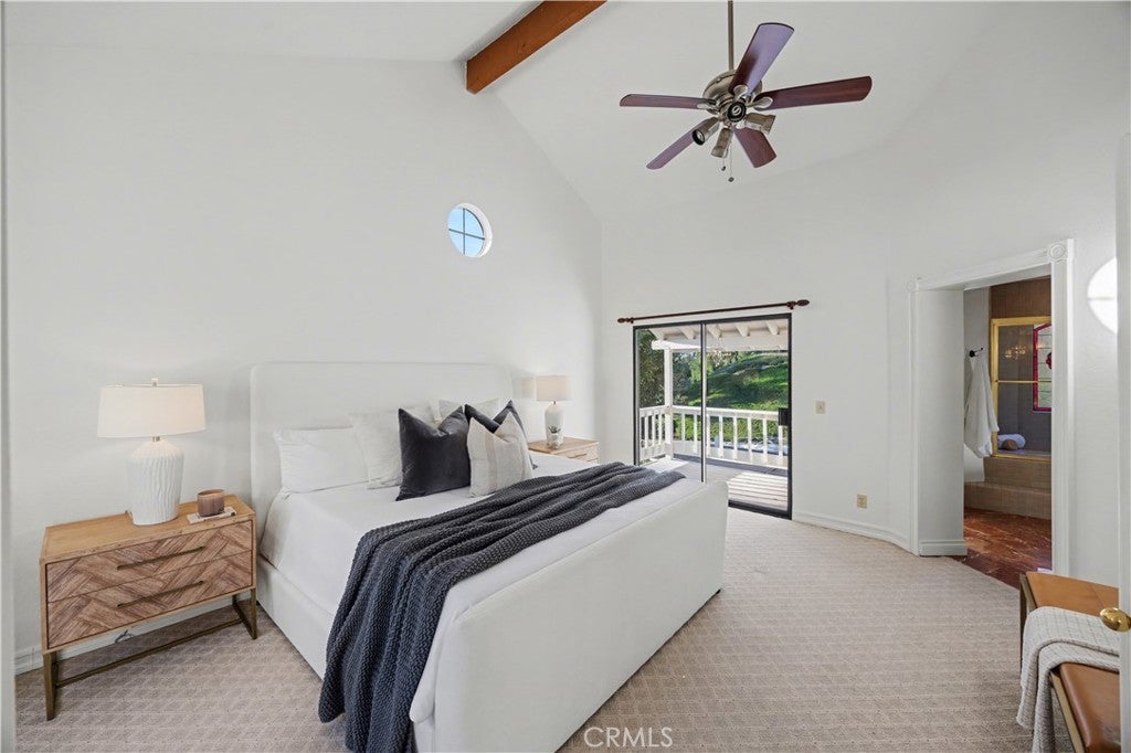 Beamed Ceilings, Balcony, Breakfast Area, Ceiling Fan(s), Separate/Formal Dining Room, High Ceilings, Recessed Lighting, Bedroom on Main Level, Primary Suite, Walk-In Closet(s), Paneling/Wainscoting, Two Story Ceilings