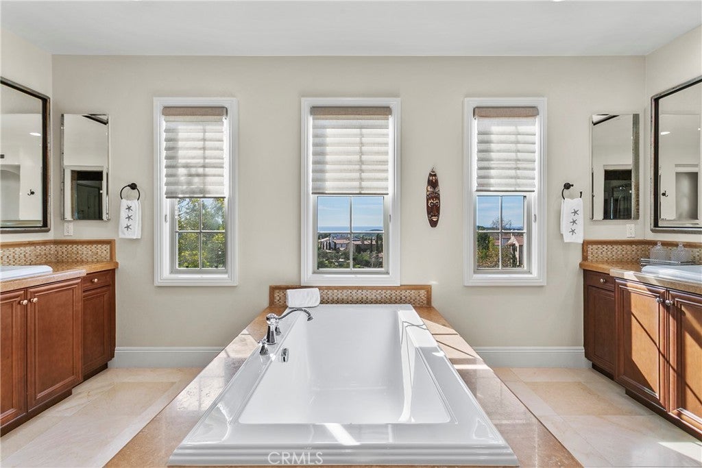 Welcome to Lucia, the most exclusive enclave in all of Talega. Set behind gates, on a quarter-acre lot, this exceptional estate offers panoramic ocean, city lights, and sunset views. A private entry courtyard with fireplace welcomes you onto the property, and provides the perfect spot for cool, coastal evenings. Across the flagstone setting, the grand entrance hall sets the stage for an elegant layout with volumes of space and natural light, and a scale that works for small gatherings or large soirees. Hardwood flooring flows throughout most of the residence, connecting elegant formal living and dining spaces, with inviting family areas designed for everyday comfort. The main level includes a separate bedroom suite, library/study, dedicated wine room, and thoughtfully designed transition spaces with classic architectural elements. Upstairs, the five-star primary suite is the ultimate retreat. Set in its own wing, the private space offers a spacious bedroom, sitting area with ocean-view balcony, spa-inspired bath with deep soaking tub and separate shower, plus an oversized walk-in closet. The upper gallery and loft area offer an excellent transition to the additional bedroom suites, and a versatile bonus room which is currently used as a home theater. This residence is designed for seamless indoor-outdoor living and the rear grounds serve as a true extension of the home. An expansive outdoor pavilion anchors the space, complete with kitchen, bar, and big-screen TV, and creates the ultimate setting for year-round gatherings, game days, and glorious ocean-view sunsets. A resort-style pool and spa with classic water features, multiple sunning and entertaining areas and stone walkways complete the outdoor environment...PLUS, an adjacent Casita offers added flexibility for guests or extended stays. Only twenty estates grace the Lucia community and opportunities like this are exceptional. This residence truly represents the best of OC coastal living and best of the Talega lifestyle