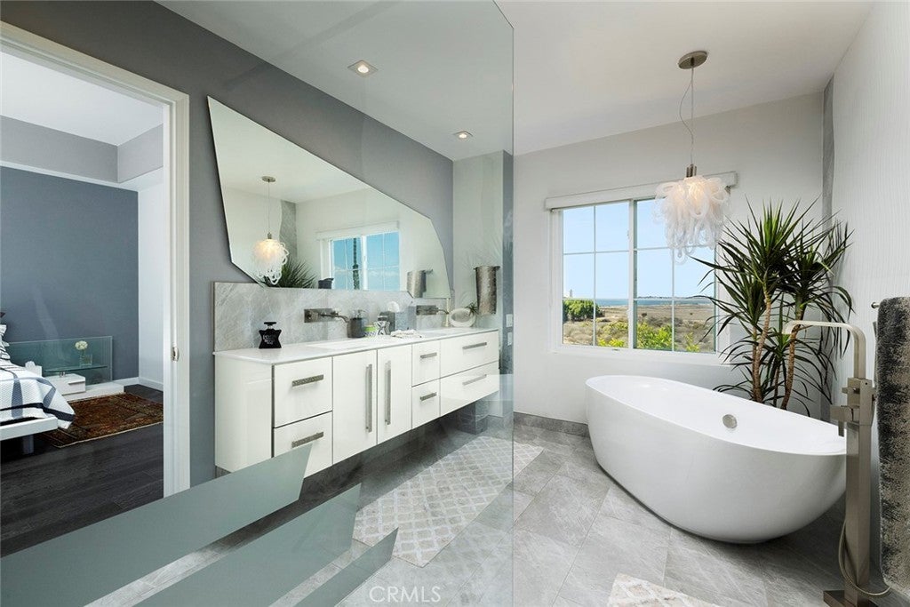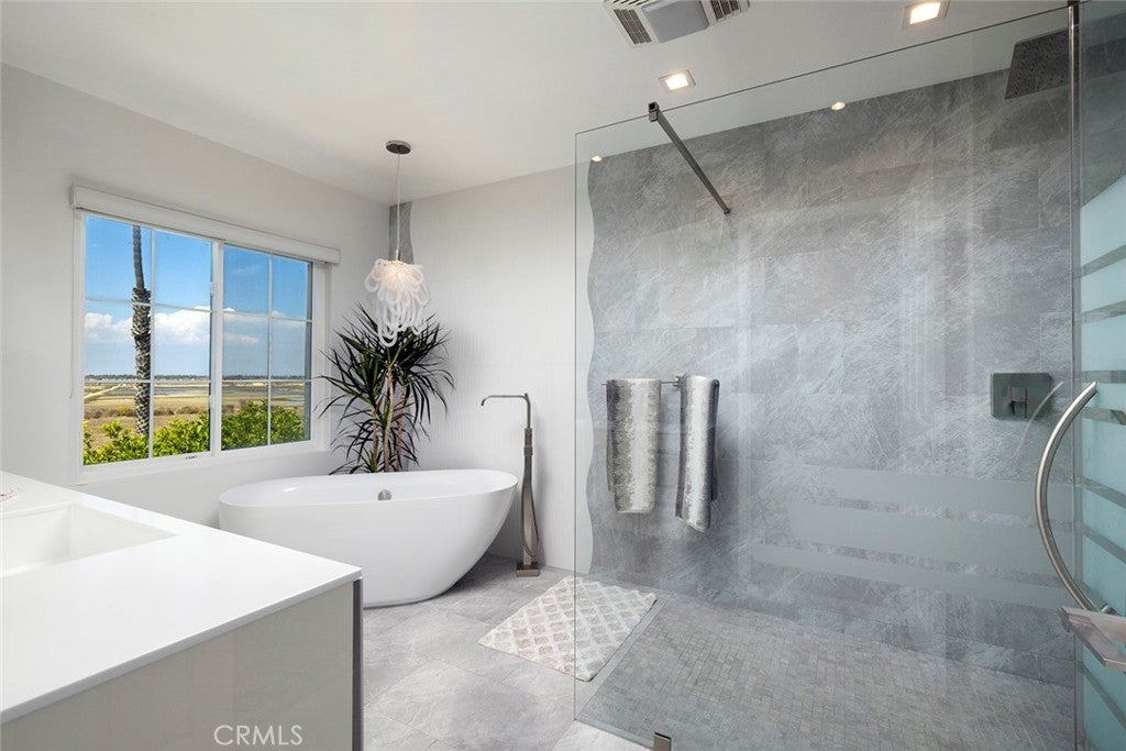 With stunning views of the Bolsa Chica Wetlands, and just a block away from your feet in the sand, this modern townhome has everything you need to live at the beach. The Seacliff On the Greens community is a 24 hour guard gated community, with lush foliage and several pools to enjoy throughout. Upgrades include hardwood floors, custom shades, stainless steel appliances including a double - oven, and a stunning fireplace that is the focal point of the home. The primary suite features 2 walk in closets, and a fully renovated bathroom with a stand alone tub, walk in shower and floating double vanity. The property is currently configured as a 2 bedroom with a loft that could easily used as a home office. There are multiple terraces and patios throughout for entertaining, and a 2 car attached garage with storage. The property is zoned for award winning schools including Seacliff Elementary and is a short distance to local parks, hiking and bike trails and hot spots like Pacific City and Downtown Huntington Beach.
