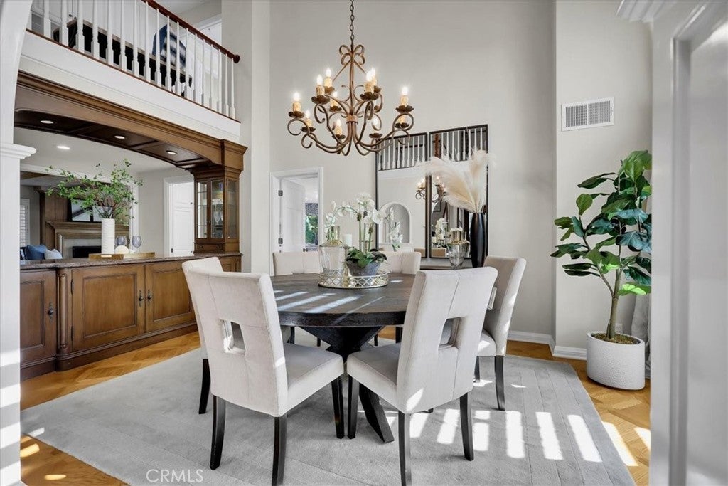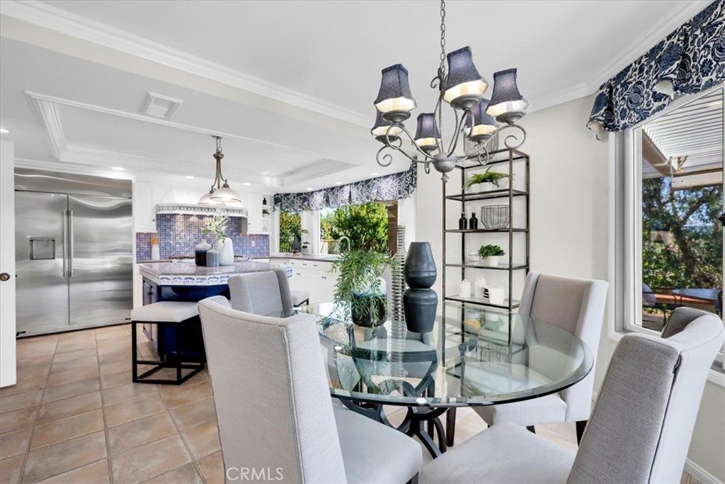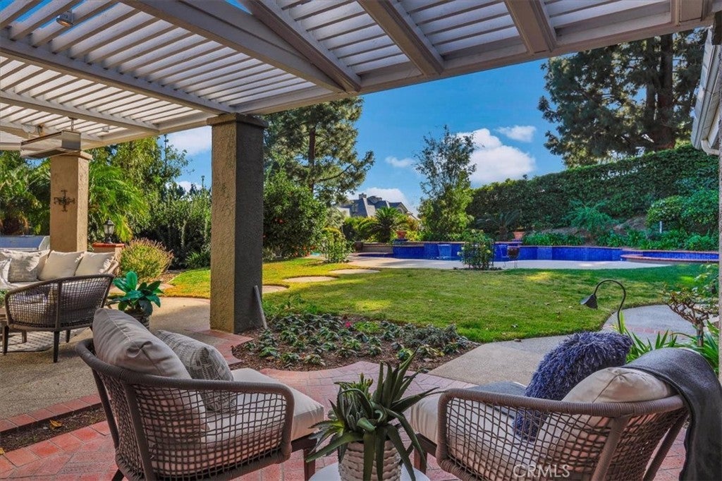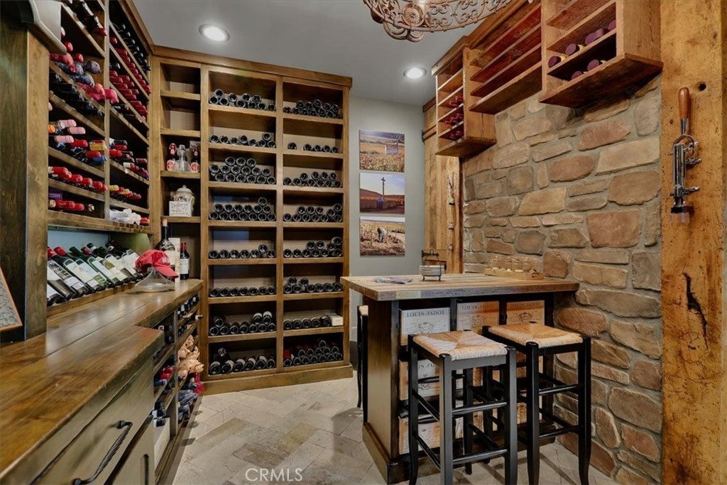An extraordinary and stunning custom home in the heart of prestigious Lemon Heights, North Tustin; this one-of-a-kind residence blends refined elegance with Southern California living. Offering five bedrooms and three bathrooms, including a main-level bedroom, the home is thoughtfully designed for both everyday comfort, indoor-outdoor living and elevated entertainment. A grand foyer sets the tone for this elegant home leading into the formal living room and dining room which is crowned by dramatic 16-foot ceilings. Seamlessly flowing from the dining room, at the center of the home, the chef’s kitchen impresses with a statement island, built-in oversized refrigerator, a professional Dacor gas range and dining nook. A truly unique showpiece, the custom-built 170-square-foot, temperature-controlled wine cellar accommodates approximately 2,500 bottles, creating a striking focal point for collectors and entertainers alike. A private sanctuary, the primary suite features sweeping views of Saddleback Mountain and surrounding rolling hills, a spa-inspired ensuite with a spa tub, and a large custom walk-in closet. The primary suite deck becomes the perfect setting to watch the sunrise and enjoy the chirping birds and morning coffee. Set on a generous cul-de-sac lot, approx 23,000 sq ft., mostly flat lot, the grounds of this home are designed for effortless indoor-outdoor living. Lush landscaping surrounds the amenity-rich pool and spa with a waterfall feature, while an expansive pergola wraps around the back of the home that offers multiple vignettes for alfresco dining and relaxation. The outdoor kitchen includes a built-in barbecue, separate burner, refrigerator, and bar seating for four. Additional highlights include custom built-in cabinetry throughout, extensive storage, a three-car garage with attic storage and pull-down access, ample guest parking, and room for a potential ADU. This home resides in the Tustin Unified School District including Foothill High, Hewes Intermediate and Arroyo Schools, all highly sought-after and known for distinguished, high academic performance and student support services. This exceptional Country Ridge Home nestled in the Tustin Foothills offers privacy, craftsmanship, and an elevated lifestyle—a rare opportunity in one of North Tustin’s most coveted neighborhoods.