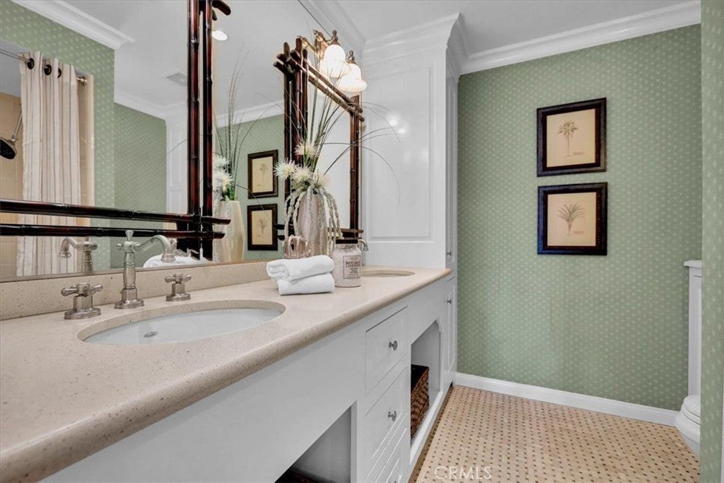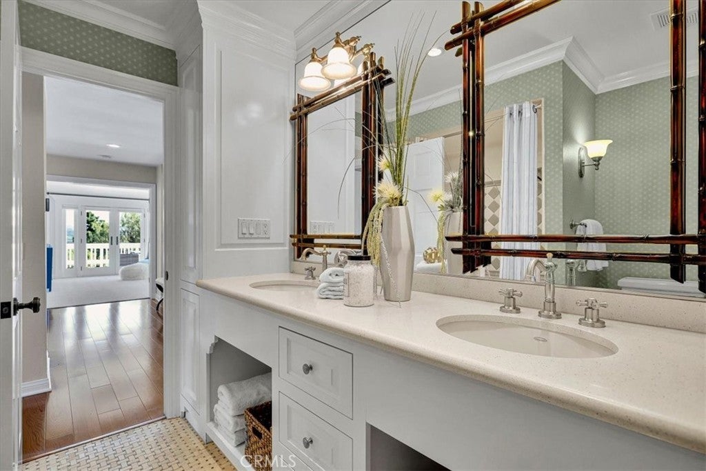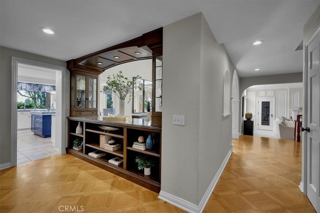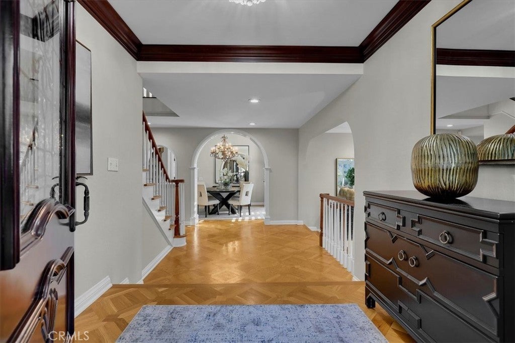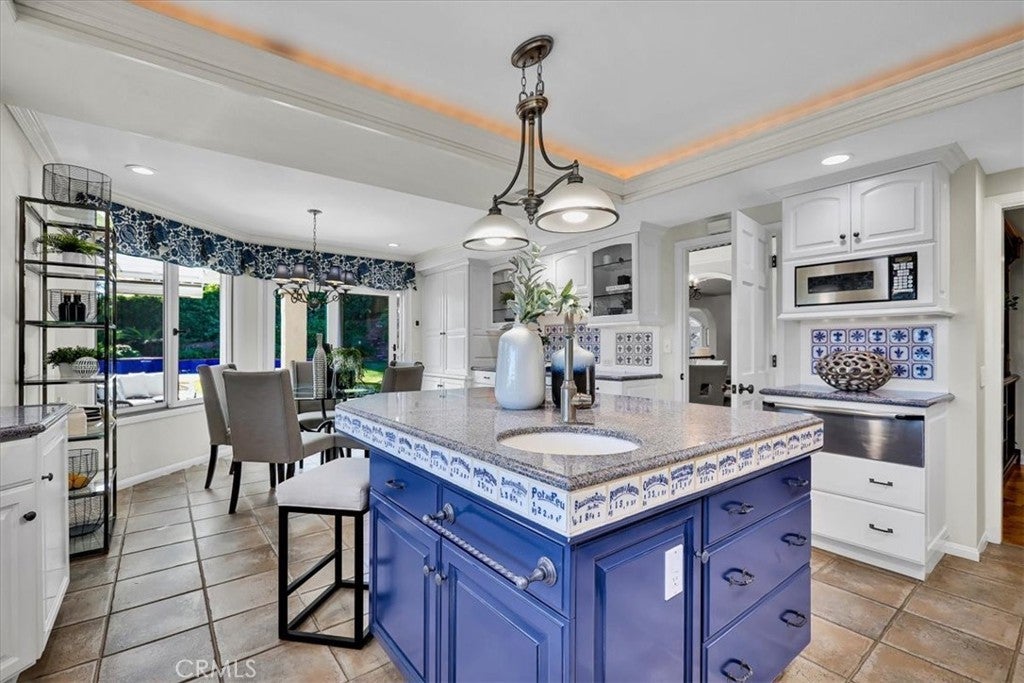 An extraordinary and stunning custom home in the heart of prestigious Lemon Heights, North Tustin; this one-of-a-kind residence blends refined elegance with Southern California living. Offering five bedrooms and three bathrooms, including a main-level bedroom, the home is thoughtfully designed for both everyday comfort, indoor-outdoor living and elevated entertainment. A grand foyer sets the tone for this elegant home leading into the formal living room and dining room which is crowned by dramatic 16-foot ceilings. Seamlessly flowing from the dining room, at the center of the home, the chef’s kitchen impresses with a statement island, built-in oversized refrigerator, a professional Dacor gas range and dining nook. A truly unique showpiece, the custom-built 170-square-foot, temperature-controlled wine cellar accommodates approximately 2,500 bottles, creating a striking focal point for collectors and entertainers alike. A private sanctuary, the primary suite features sweeping views of Saddleback Mountain and surrounding rolling hills, a spa-inspired ensuite with a spa tub, and a large custom walk-in closet. The primary suite deck becomes the perfect setting to watch the sunrise and enjoy the chirping birds and morning coffee. Set on a generous cul-de-sac lot, approx 23,000 sq ft., mostly flat lot, the grounds of this home are designed for effortless indoor-outdoor living. Lush landscaping surrounds the amenity-rich pool and spa with a waterfall feature, while an expansive pergola wraps around the back of the home that offers multiple vignettes for alfresco dining and relaxation. The outdoor kitchen includes a built-in barbecue, separate burner, refrigerator, and bar seating for four. Additional highlights include custom built-in cabinetry throughout, extensive storage, a three-car garage with attic storage and pull-down access, ample guest parking, and room for a potential ADU. This home resides in the Tustin Unified School District including Foothill High, Hewes Intermediate and Arroyo Schools, all highly sought-after and known for distinguished, high academic performance and student support services. This exceptional Country Ridge Home nestled in the Tustin Foothills offers privacy, craftsmanship, and an elevated lifestyle—a rare opportunity in one of North Tustin’s most coveted neighborhoods.
