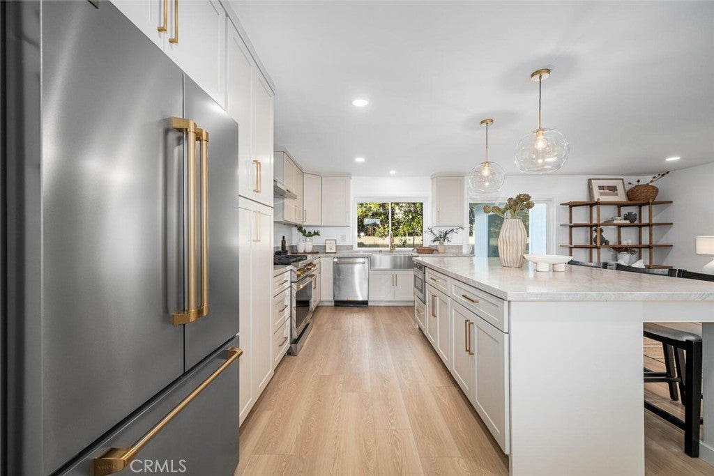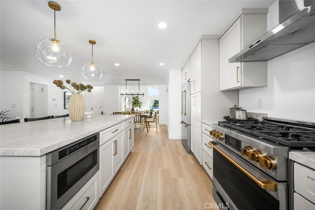 Welcome to this beautifully remodeled, single-story home located in the highly desirable College Park East community. This light-filled 4-bedroom, 2-bath residence has been thoughtfully updated throughout and offers an open, modern feel perfect for today’s lifestyle. The stunning kitchen features custom cabinetry, quartz countertops, and premium Thor appliances, seamlessly flowing into the main living areas. New luxury laminate flooring runs throughout the home, complementing the fresh, contemporary design. Both bathrooms have been fully remodeled, with the primary bath showcasing elegant marble flooring. Enjoy newly landscaped front and back yards ideal for entertaining or relaxing. Centrally located within the tract and situated in the highly sought-after Los Alamitos School District, this turnkey home offers the perfect combination of style, comfort, and location.