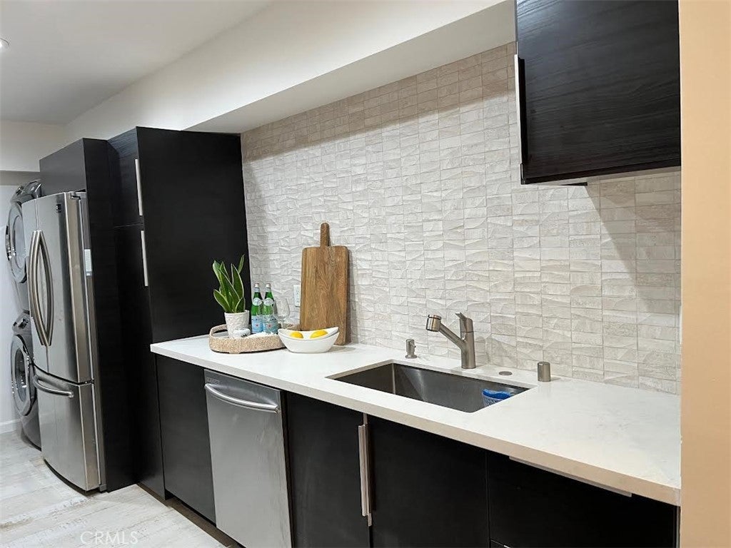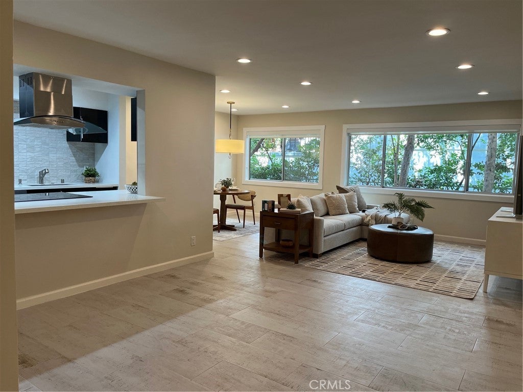 OVER $$30,000 upgrads done in 2022. The dining area can BE CONVERTED to a secondary bedroom. This super spacious one-bed, one and a half bath, single-level unit is situated in the heart of West Hollywood. The open floor plan is filled with natural light from a wall of windows and tree line views. Enjoy recess lighting throughout and new bedroom flooring. The Chef's kitchens features custom cabinetry, quartz countertops, designer tile backspashes, stainless steel appliances and stackable washer and dryer. The large bedroom includes a newly remodeled spa-like bathroom with soaking tub, seperate shower and walk-in closet plus additional closet with mirror door. The building is beautifully maintained with newly painted lobby and hallways and new carpeting. Secured one parking space. HOA amenities include parking, pool, and HOA fee includes water, trash & A/C. Near beautiful Kings Road Park, minutes from Gelson's, Melrose Farmers Market, and the best LA's restaurants, shops and night life-this condo is the perfect spot to enjoy the West Hollywood lifestyle.