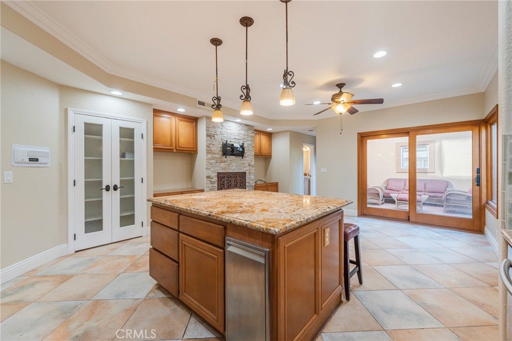 Welcome to your dream coastal sanctuary. This stunning Mediterranean-inspired residence offers three full stories of thoughtfully designed living space, perfectly blending beachside charm with upscale comfort—ideal for both elegant entertaining and relaxed family living. Enter through the gated front patio, where a cozy fire pit sets the stage for evenings under the stars. Inside, the chef-inspired kitchen features sleek stainless steel appliances and tile flooring that flows seamlessly through the open-concept living and dining areas, highlighted by crown molding and custom finishes throughout. The first-floor family room is anchored by a striking stone fireplace, creating a warm and inviting atmosphere. On the second level, you’ll find a spacious den with its own fireplace, along with a luxurious primary suite featuring yet another fireplace and ocean views that invite total relaxation. The third-floor bonus room offers breathtaking panoramic ocean views—an ideal space for a home office, creative studio, or serene retreat. Additional highlights include newly painted interiors, multiple balconies, newer windows and doors, and timeless architectural details throughout. Just steps from the beach and a short bike ride to downtown and Pacific City, this exceptional home is a true coastal gem.