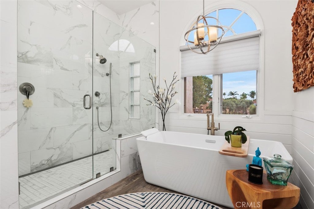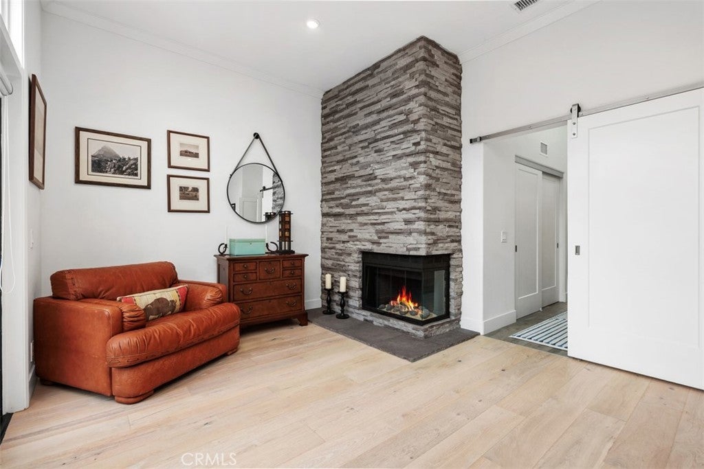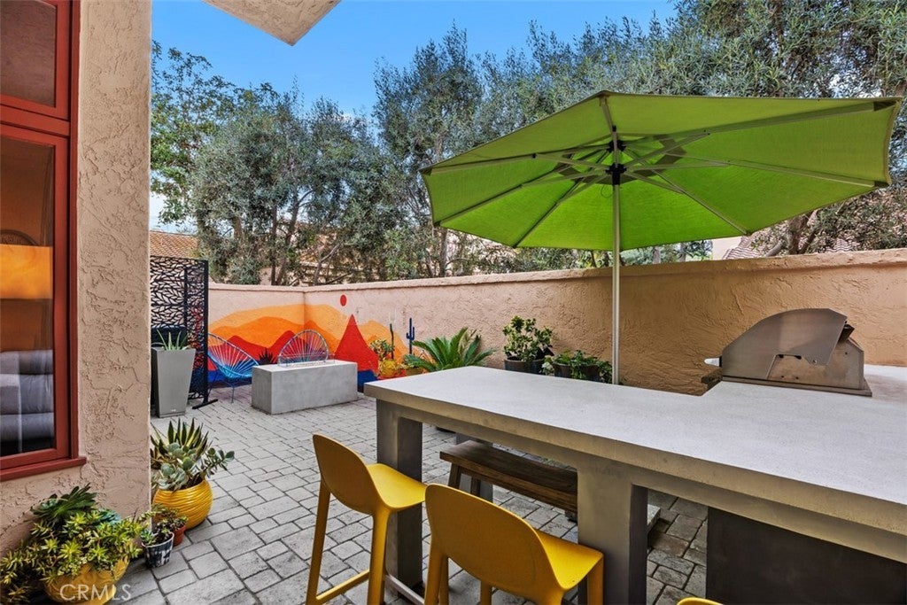Set within the gated Alcala enclave of Whispering Palms, this refined Davidson-built residence blends elevated design with a relaxed, effortless way of living. The sought-after Viola model offers generous indoor-outdoor flow, airy volume, and thoughtfully refreshed spaces that complement the community’s tranquil Rancho Santa Fe setting. A prior full remodel introduced quartz surfaces, European-style shaker cabinetry, Coretec Blackstone Oak plank flooring on the main level, and KitchenAid appliances. The current owner continued the enhancements with hardwood flooring throughout the upper level, hardwood stairs with a modern open rail, upgraded fireplace inserts, a refreshed patio environment, and additional functional improvements including a newer water heater, water purification system and updated garage door opener. The kitchen features quartz counters, a stylish matte ceramic tile backsplash, a center island, and seamless connection to the great room. The living area centers around a stone-accented fireplace and extends toward the outdoor patio—finished in custom concrete pavers and designed with a built-in dining/bar setup, BBQ, and fire feature for effortless evening gatherings. Upstairs, the private rooms feel warm and calm, supported by rich hardwood flooring and a thoughtfully enhanced primary suite with quartz counters and contemporary finishes. The Alcala community provides a serene resort-style environment with two pools, two spas, lushly maintained grounds, roaming security, and gated access with an attendant on most days. Positioned moments from the La Valle Coastal Club, coastal conveniences, and all the charm of Rancho Santa Fe, this residence offers an elevated lifestyle where comfort, design, and ease converge.