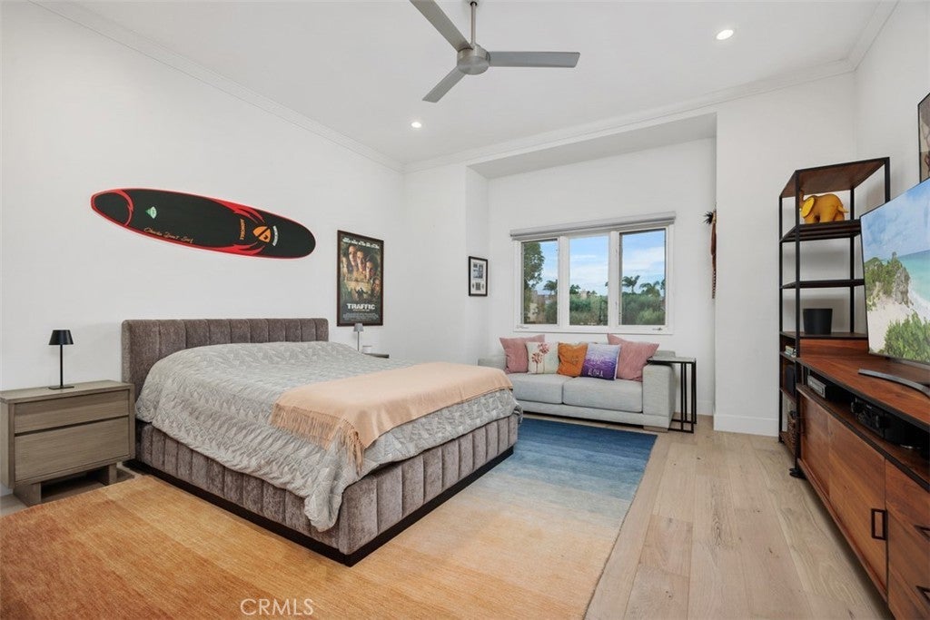 Wet Bar, Breakfast Bar, Balcony, Ceiling Fan(s), Crown Molding, Separate/Formal Dining Room, High Ceilings, Open Floorplan, Quartz Counters, Recessed Lighting, Wired for Data, Bedroom on Main Level, Primary Suite, Walk-In Closet(s)
