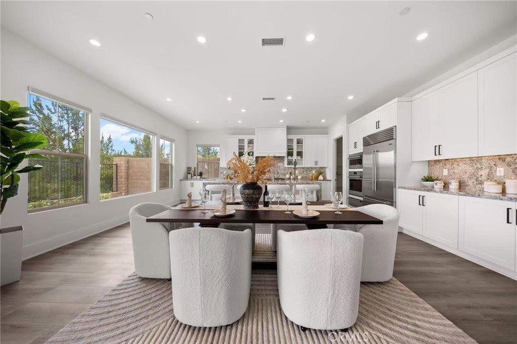 Built by Irvine Pacific – Quality You Can Feel. This luxurious Azul Groves residence is nestled within the exclusive 24-hour guard-gated community of the Groves in Orchard Hills. Set on a premium lot with no home directly behind and elevated for enhanced privacy and natural light, this home offers breathtaking views of the surrounding hills and sparkling city lights. Spanning 3,300 sq. ft., the open-concept floor plan boasts 10-foot ceilings, an airy and light-filled layout, and panoramic sliding glass doors that blend indoor and outdoor living seamlessly. The chef-inspired kitchen is outfitted with top-of-the-line Wolf and Sub-Zero appliances, a stunning polished granite waterfall island, and designer full-height quartz backsplashes—perfect for elevated entertaining. Upstairs, the expansive primary suite features panoramic mountain and city views, a spa-like bathroom with a freestanding soaking tub, a glass-enclosed walk-in shower, and a generously sized walk-in closet. Additional highlights include four bedrooms, three and a half baths, a first-floor guest suite, a spacious upstairs office/study, and an architecturally upgraded glass staircase. This home includes over $300,000 in premium upgrades, including 3.6kw paid-off solar panels, luxury vinyl plank flooring throughout, and more. Located on a quiet, interior street with no through traffic, it’s just steps away from the community playground, green lawns, and resort-style pool—a perfect spot to enjoy time with kids or pets. Enjoy life in one of Irvine’s most prestigious neighborhoods, served by the award-winning School District. Just minutes from Orchard Hills Shopping Center and fine restaurants. Easy freeway access. Come experience luxury, privacy, and convenience—this home is a rare find. Don't miss it!