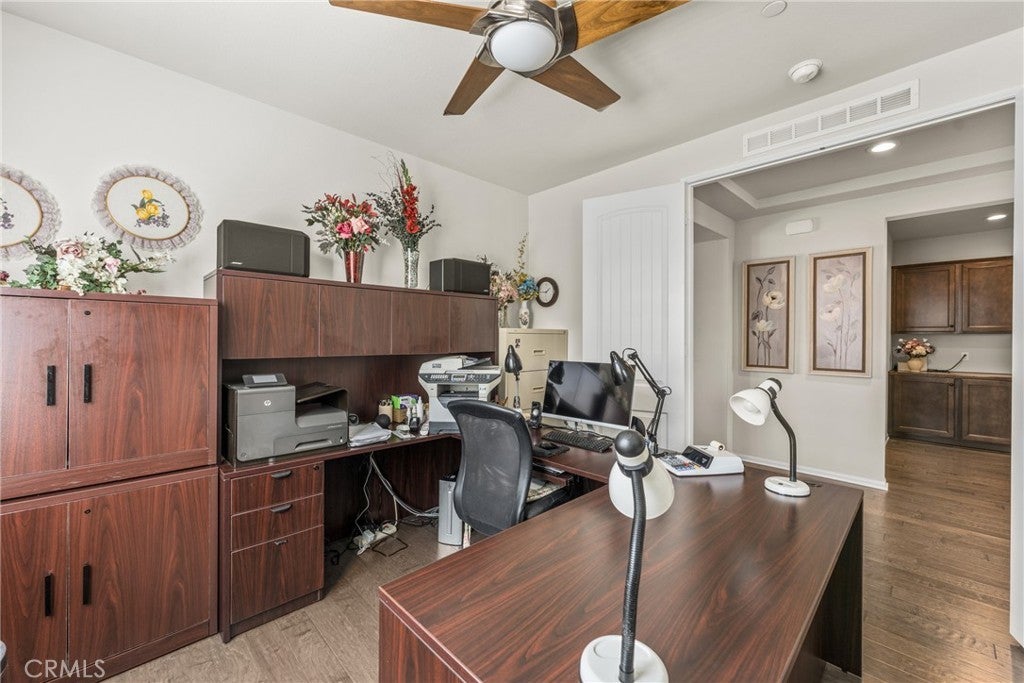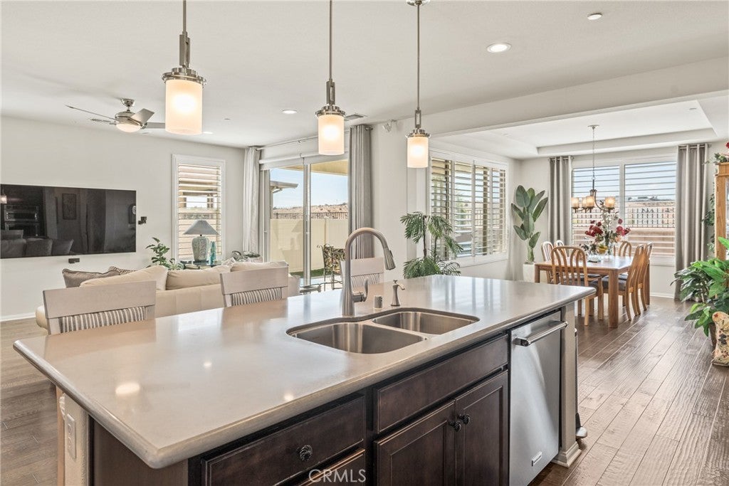 Breakfast Bar, Built-in Features, Ceiling Fan(s), Separate/Formal Dining Room, High Ceilings, Open Floorplan, Pantry, Quartz Counters, Recessed Lighting, Storage, Wired for Sound, All Bedrooms Down, Bedroom on Main Level, Main Level Primary, Primary Suite, Walk-In Pantry, Walk-In Closet(s), Coffered Ceiling(s)