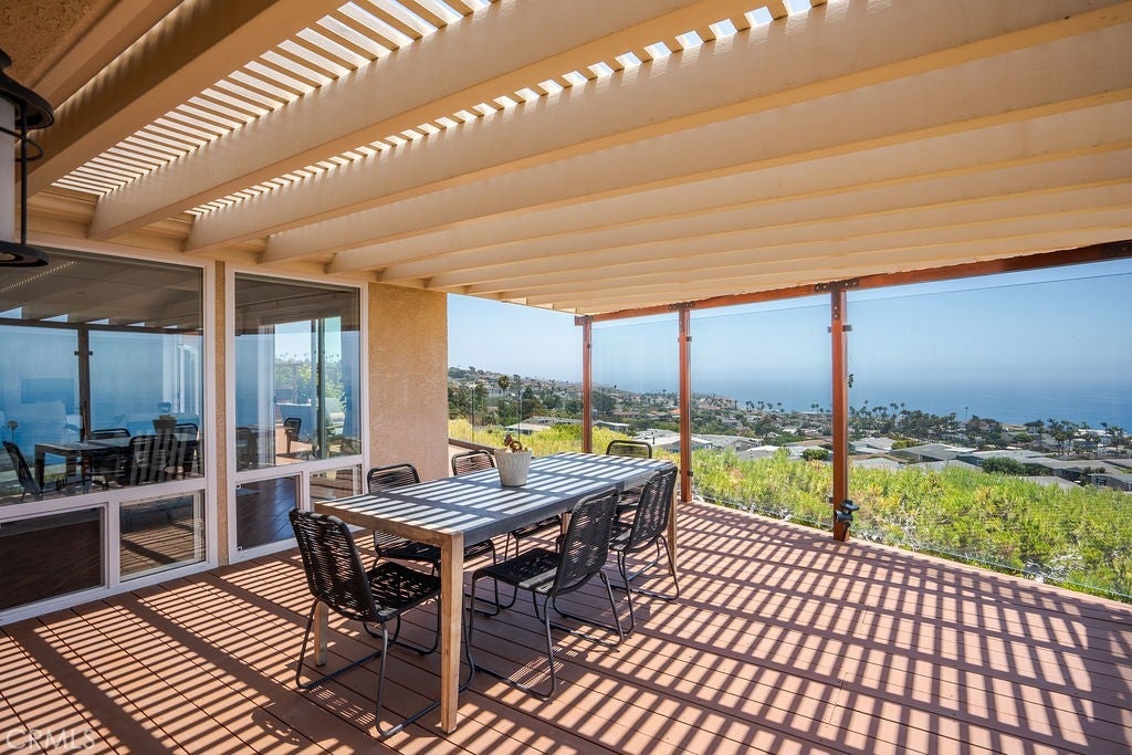 Prepare to be swept away by one of Palos Verdes Shores’ most prized possessions—a spectacular remodeled 3-bedroom, 3-bath home offers a luxurious living space, designed to maximize comfort, style, and breathtaking ocean views, covetously located at the end of a quiet cul-de-sac. Whether you’re sipping your morning coffee or entertaining under the stars, this backyard is stunning with its expansive private wraparound deck with sleek glass railings and unmatched 270-degree panoramic vistas—from Dana Point and frontal Catalina views to the distant Channel Islands. With 3,090 living square feet, nearly every inch of this home has been reimagined with quality finishes and designer touches. Enjoy an open-concept living area with a chef’s dream kitchen featuring a massive island, Thermador range, stainless steel appliances, wine cooler, and custom cabinetry. The spacious ocean-view den is perfect for a home office or creative retreat. Featuring dual master suites, each with private baths, walk-in closets, and access to private decks, this home offers both luxury and privacy. Additional highlights include new interior paint, a separate laundry room and pantry with private porch, and a large covered carport for two cars plus a golf cart with built-in storage. Nestled on a bluff on the scenic Palos Verdes Peninsula, Palos Verdes Shores MH & Golf Community is an upscale gated senior community, residents enjoy premium resort-style amenities including a 9-hole golf course, heated pool and spa, fitness center, tennis and pickleball courts, clubhouse, library, dog parks, gardens, coastal hiking trails, and 24-hour guarded security. Living square footage of 3090sqft is based upon APN (AIN) and LA County tax property profile. This is a once-in-a-lifetime lifestyle opportunity to own a truly irreplaceable coastal treasure!