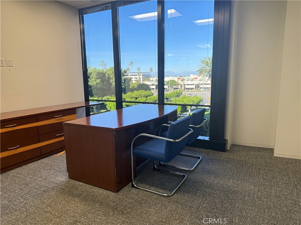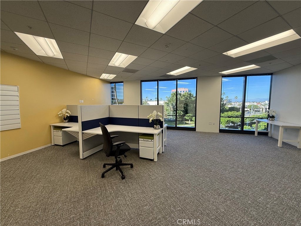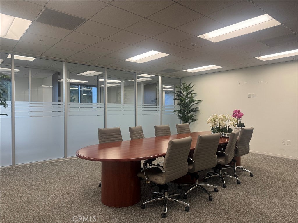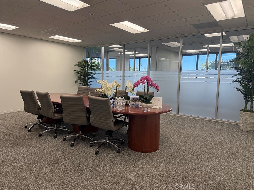 Suite 340 – Partially Furnished Office Suite at Irvine Concourse Suite 340 offers a well-appointed, partially furnished office suite with a double-door entrance leading to a professional reception area. The layout includes a large conference room, four private offices, a generous open work area, an open kitchen, and a dedicated IT board—ideal for professional, medical, or corporate users seeking a functional, move-in-ready space. Located within Irvine Concourse at 2020 Main Street, the building features a distinctive granite façade composed of Carmen Red and Rojo Porriño Pink granite, complemented by full-height blue reflective and solar gray glass. Designed to support modern office operations, the property offers a 100 lbs/sf floor load, 12-foot ceilings on the first floor, and recently renovated vertical transportation, including five passenger elevators traveling at 400 feet per minute with 3,500-pound capacity, along with a freight elevator providing access to the loading dock. The property includes a separate parking structure integrated with the building, offering 886 parking spaces for employees and visitors, secured by a card-access control system, and equipped with electric vehicle charging stations. Tenants enjoy a highly walkable location with two hotels, 10 restaurants, and Sports Club Irvine nearby. John Wayne Airport and Interstate 405 are conveniently accessible, providing excellent connectivity throughout Orange County and beyond.