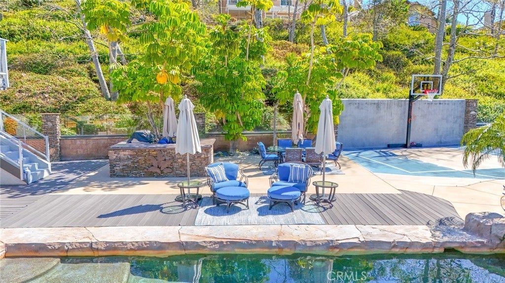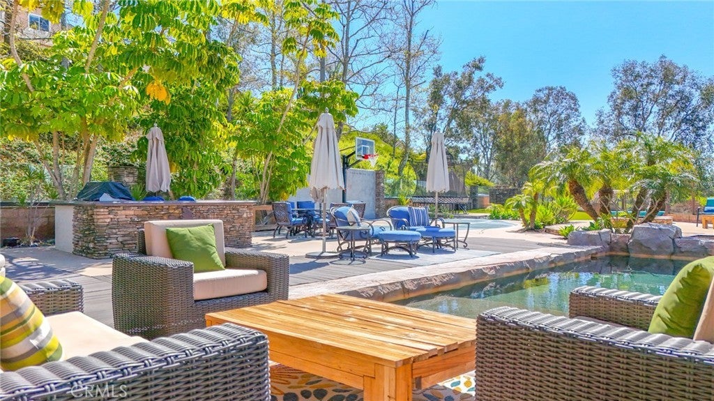 Turnkey Property. GREAT FOR ENTERTAINING. Property on one of the LARGEST LOTS(16,172 sq. ft.) in Aliso Viejo. Backyard has a Stunning Rock Surround Pool & Spa & Water Fall, Multiple Fountains , a Sports Court, Built in BBQ Island, Fire Pit, CeadarWorks Play Set, Canyon Views and More. Located at the End of a Long Cul-de-Sac the home is set back with a Long Driveway(at least 6 cars could fit with room to spare) The Large Entry Courtyard is surrounded by Custom Wooden Gates(Custom built by Garden Passage), Glass Walls and extensive Masonry. Entering the 2,824 sq. ft. HOME you see Two Story Ceilings and Custom Full Length Windows to take advantage of the Canyon Views. Schonbek Crystal Chandeliers in almost all rooms throughout the house. Enjoy the Office/Bedroom and Full Bathroom with river rock shower on the First Level. UPGRADED KITCHEN(with two walk-in pantry’s) opens up to Enormous Family Room with Accordion Style Glass Doors that truly brings the inside out looking at the Rolling Hills of Laguna Beach. Heading upstairs you enter the Master Bedroom through the Double Door entry to Commanding Views and Access to the approx. 900 sq. ft. roof deck to enjoy endless sunsets, entertaining or Dinner with Friends. The Master Bath is Open and Bright with a glass enclosed Shower, Large Tub and Duel Vanities. Two additional Bedroom, Large Bathroom and Loft are all nearby. Location is Perfect. Just Minutes from Downtown Laguna Beach and next to the 73 toll road for quick access to Newport, San Juan Capistrano and Irvine Spectrum. This property has to many upgrades to mention. Please see list in Supplements for Greater Detail.
