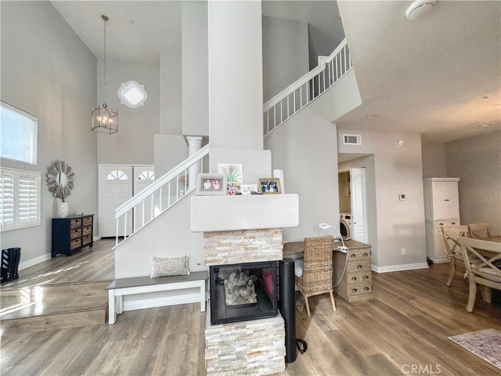 Fully Furnished Condo in the Vilamoura community of Rancho San Clemente available on a 3 month minimum term. Corner unit has bright living room with vaulted ceiling, kitchen has stainless steel appliances, stone counters. Sliding glass doors in the living room and kitchen open to your backyard. Direct access from dining area to the 2 car garage which includes electric car charger. Laundry in closet with LG washer and dryer included. 1/2 bath downstairs. Staircase leads to 3 bedrooms and 2 baths. Primary bedroom has a fireplace, balcony, walk-in closet. Villamoura Community has ocean view pool & spa. Close to Lobo Elementary School and large city park offering: Tennis, Basketball & Volleyball courts.