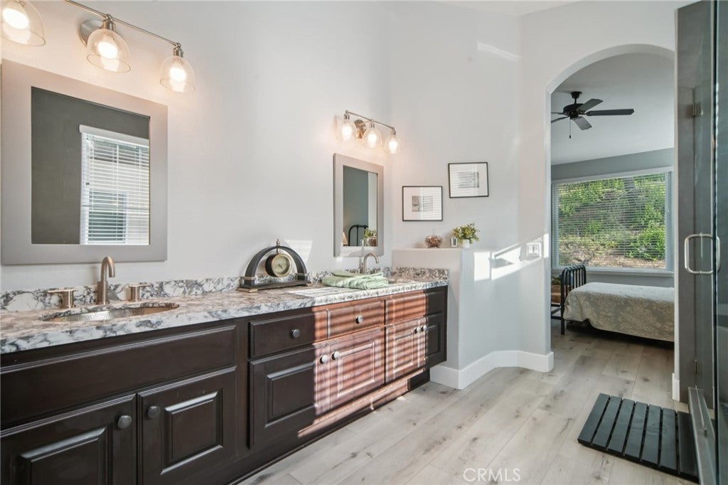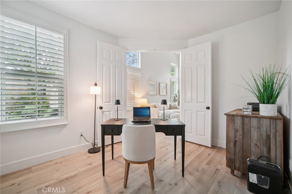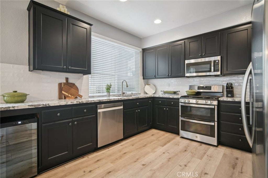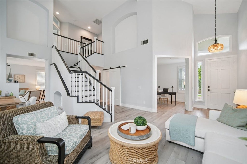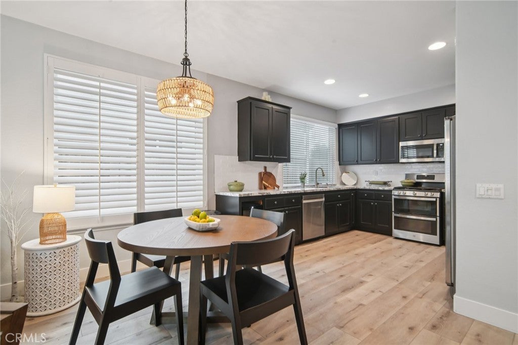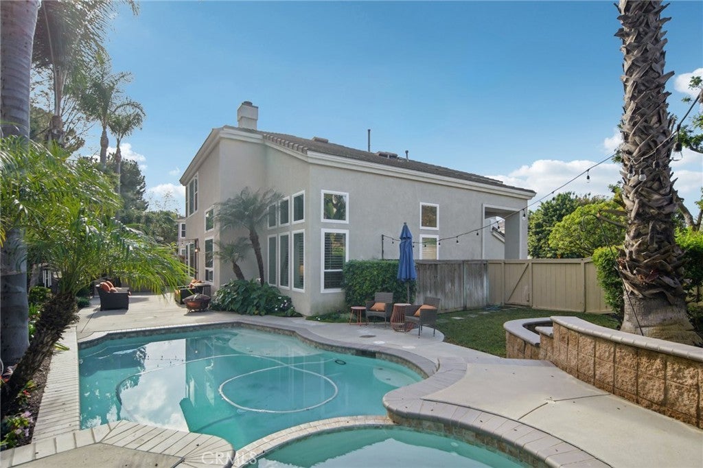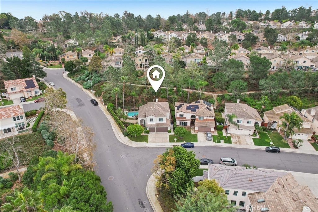 Corner lot on a cul-de-sac in one of Aliso Viejo’s most sought-after neighborhoods, 2 Blackbird Lane is a refined, resort-style residence that seamlessly blends timeless design with modern luxury. Thoughtfully upgraded throughout, this exceptional home offers 4 bedrooms and 3 bathrooms, including a main-level bedroom and full bath, ideal for guests, multigenerational living, or a home office. The chef’s kitchen is a true showpiece, featuring quartz countertops, designer tile backsplash, new premium appliances, and a built-in wine refrigerator, all opening gracefully to the inviting family room. Laminate flooring throughout and a custom wood staircase elevate the home’s warmth and architectural appeal. The primary suite is a private sanctuary, highlighted by dual quartz vanities, a spa-inspired luxe shower, an oversized soaking tub, walk-in closet, and a private water closet, creating a true retreat experience. All secondary bathrooms are equally refined with quartz vanities and upgraded finishes. Recent enhancements include new dual-pane windows for comfort and energy efficiency, along with a sleek epoxy-finished garage. Step outside to your own backyard oasis, designed for year-round enjoyment. The outdoor space features a resort-style pool and spa and a built-in BBQ, perfect for hosting unforgettable gatherings or relaxing in total privacy. Ideally located near award-winning schools, scenic parks and trails, upscale shopping and dining, and convenient freeway access, 2 Blackbird Lane delivers an elevated Southern California lifestyle where luxury, comfort, and location converge.