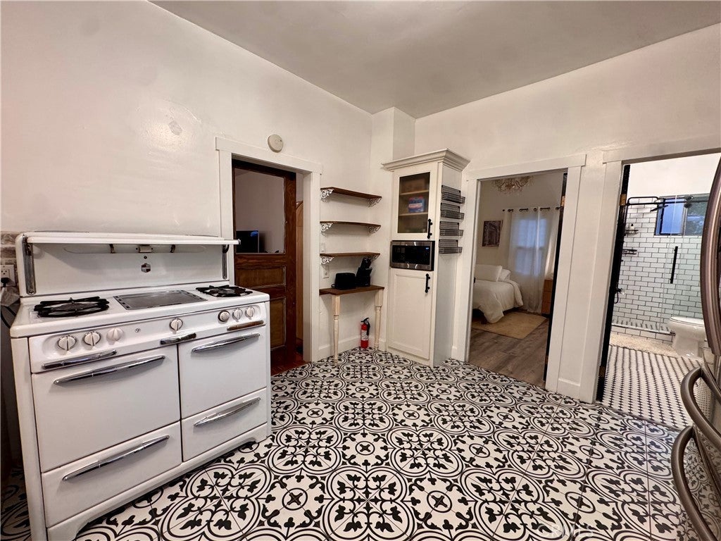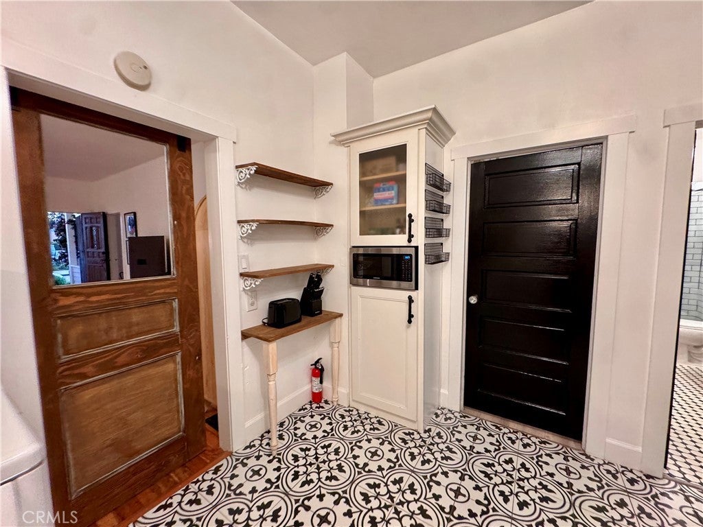 Fully Furnished Flexible MTM/ six, twelve month rental. Come lease this beautifully restored 1912 Farmhouse right inside the boundries of Floral Park, one of the most desired neighborhoods in Santa Ana. This house is probably one of the last few farmhouse style bungalows left in the neighborhood with great curb appeal and an awesome front porch. Sit back and relax on your front porch swing sipping lemonade watching the world go by. This 3 bedroom 1 bath single level home lives large. The high ceilings, white walls, black accents, light oak floors, large windows and french doors give you a very nice clean and open feel as you walk in. One of our favorite areas in this home is the outdoor living room. This space has a built in BBQ, with a fridge, plenty of storage and space to lounge with your friends and family. The pink and red Bougonvillas and the hand painted black and white concrete tiles also gives this space a nice accent. Back inside in the living room, is your dining area and two bedrooms. Through the barn door, you will see the farmhouse inspired kitchen equipped with a opened shelving, white quartz counters, a deep farmhouse sink, a large Samsung fridge, dishwasher, a pantry with a built-in microwave and lots of windows. The 3rd bedroom or large closet and main bathroom is located on this side of the house. This home's design and style was ripped right out of the pages of Magnolia Magazine. Before you head outside down the steps to the backyard, you have another room which we call the "Nook". This room is for your washer dryer and large enough for a desk and a lounge chair. It is our Cali Mud room. On to the back yard!! It is large, paved, pebbles, lots of shrubs, a raised herb garden and beautiful roses. Sprinkler system is also installed to keep the gardens green. The home also has automated accent garden lighting throughout. A cute birdbath and a beautiful 3 tiered fountain invites the birds and butterflies to come and enjoy the fresh water daily. There is a Persimmon tree and two lemon/lime trees that produce fruit all times of the year. The off street parking right out front in your paved driveway is such a plus!! Also you have a private gate to enter the home from the alley. Large enough to park 2 or 3 more cars even an RV. CLOSE to CHOC, Bowers Museum, Main place Mall The Cube and approx four miles to Disneyland.