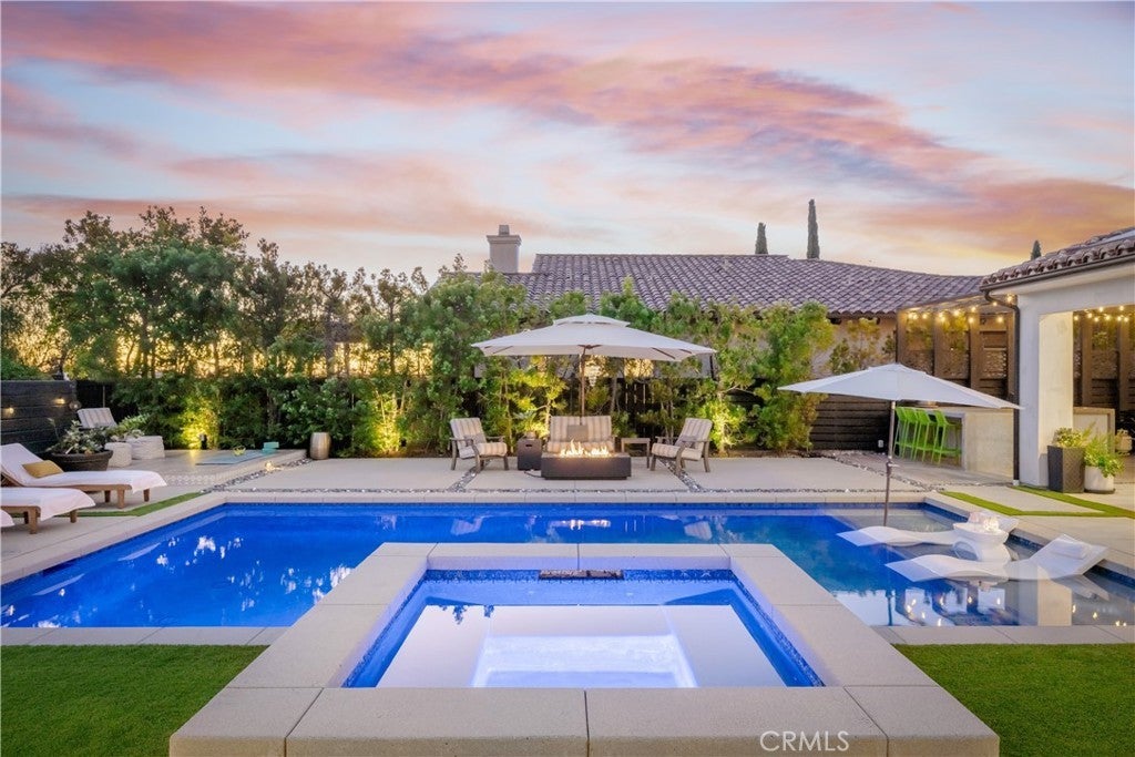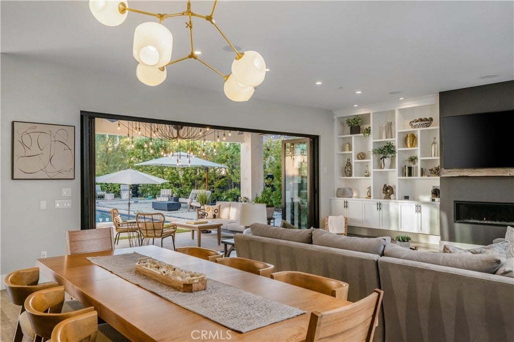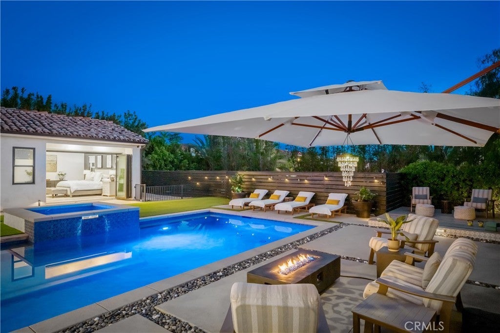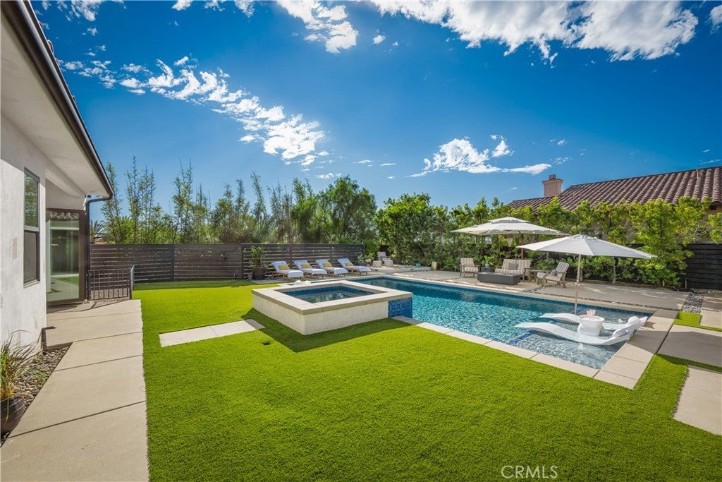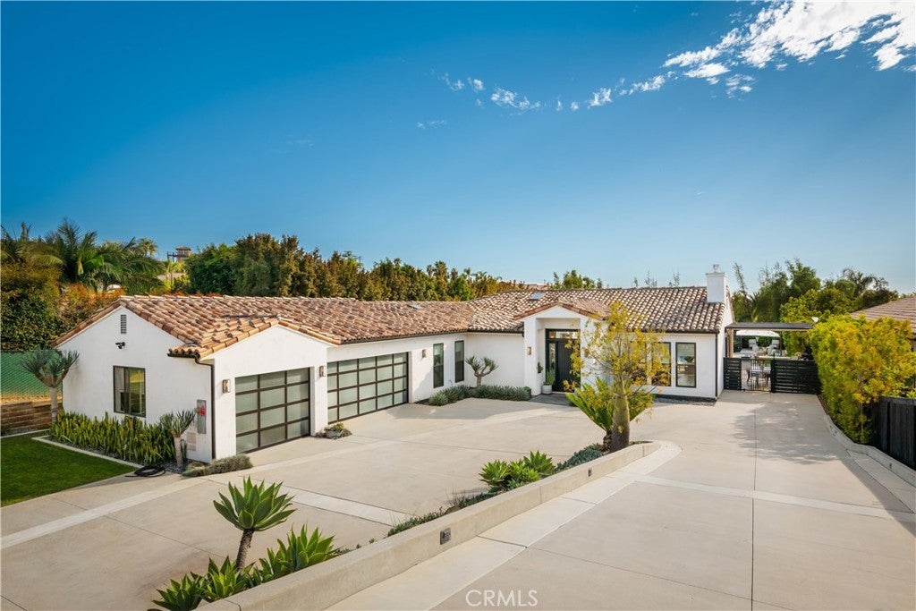 Located in the foothills of Vista, this exceptional fully custom, single-story Spanish-Modern estate is a true showplace, offering rare privacy, space, and turnkey living. Set behind a private gated entry on a fully usable half-acre, this estate-style property delivers the kind of single-level lifestyle that is increasingly difficult to find in North County San Diego. Designed for seamless indoor-outdoor living, the home features five bedrooms and four bathrooms with an open-concept great room layout. Approximately 40 feet of expansive modular glass doors open from the great room, dining area, and primary suite to covered patios and a resort-style backyard, creating effortless flow for everyday living and entertaining. The chef’s kitchen is fully custom with soft-close cabinetry, pull-out drawers, a 12-foot island, dual sinks, and a professional Thermador appliance suite. A walk-in pantry with custom shelving and barn door adds both style and functionality. The spacious primary suite serves as a private retreat with direct access to the pool and spa through a glass bi-fold door, electric privacy shade, and a barn door separating the bedroom from the spa-inspired bath. The primary bathroom features a freestanding soaking tub, marble shower, and custom cabinetry. Interior finishes throughout include hardwood flooring, built-in cabinetry, a modern glass fireplace with vintage timber mantel, Hunter Douglas Roman blinds, and cohesive matte black and brass hardware. Outdoor living is equally impressive, with a resort-style pool featuring a Baja shelf, spa, covered patio with decorative chandelier, and a fully developed outdoor kitchen with built-in BBQ. The backyard offers a quiet, private environment designed for entertaining without close neighbor proximity. Additional highlights include paid-off solar (33 panels), dual HVAC systems, tankless water heater, whole-house central vacuum, integrated interior/exterior audio, private gate with call box connected to cell phone, oversized three-car garage with attic storage, RV parking option, and an expansive driveway accommodating up to nine vehicles. A rare opportunity to own a fully custom, single-story estate combining craftsmanship, lifestyle, and privacy—without compromise.