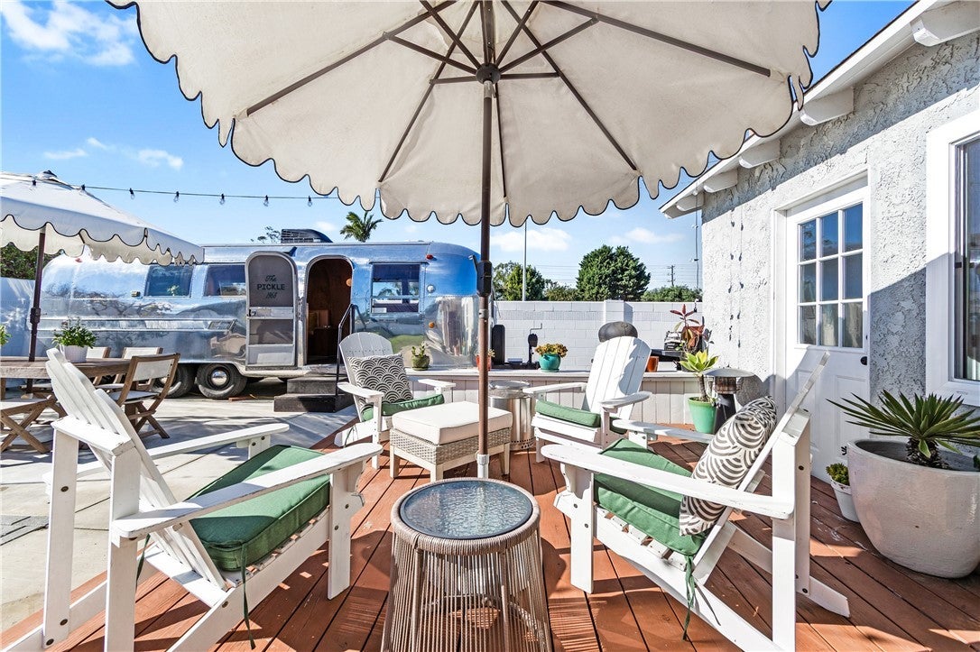 LIVE THE HUNTINGTON BEACH VACAY LIFE -- Fully Furnished | 3–6 Month Lease | Includes “The Pickle” Vintage Airstream Perfect for relocation, insurance housing, or remodel-in-progress, this fully furnished Huntington Beach home offers a rare turn-key short-term lease opportunity. This charming 3-Bedroom, 1.5-bath residence sits on a spacious 7,000 sq ft corner lot, delivering the ultimate Southern California lifestyle, sunshine, space, and effortless indoor-outdoor living. Inside you'll find an open-concept kitchen and living area designed for both comfort and entertaining. The kitchen features butcher block countertops and a cooktop facing the main living space, creating a welcoming central gathering spot. Vintage and mid-century modern touches throughout give the home a clean, eclectic coastal feel. Each bedroom offers direct patio access, with multiple outdoor spaces, including a rear patio, additional backyard seating areas, and a private side-yard retreat. The west-facing orientation provides beautiful afternoon light and sunset ambiance. And then… there’s The Pickle. Parked on the property is the iconic 28' vintage Airstream known as “The Pickle" - a beloved showpiece at Orange County events, now thoughtfully transformed into a one-of-a-kind lounge space. Featuring warm wood interiors, built-in banquette seating, a bar area, and ambient lighting. It can serve as a guest retreat, cocktail lounge, creative studio, or a work-from-home hideaway. Rent includes maid service, gardening service, utilities, and internet, offering a truly low-maintenance, move-in-ready experience. LOCATION, LOCATION, VACATION! Less than 2 miles from the beach, enjoy biking to the sand, paddleboarding in the harbor, and easy access to Traders Joes, dining, shopping and coastal favorites including Captain Jack’s. Available for 3-6 months. Come live at the Beach... with a pickle on the side.