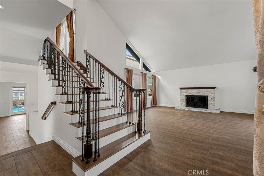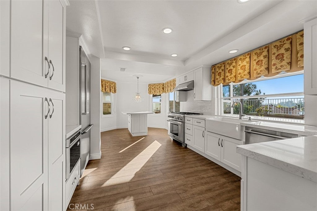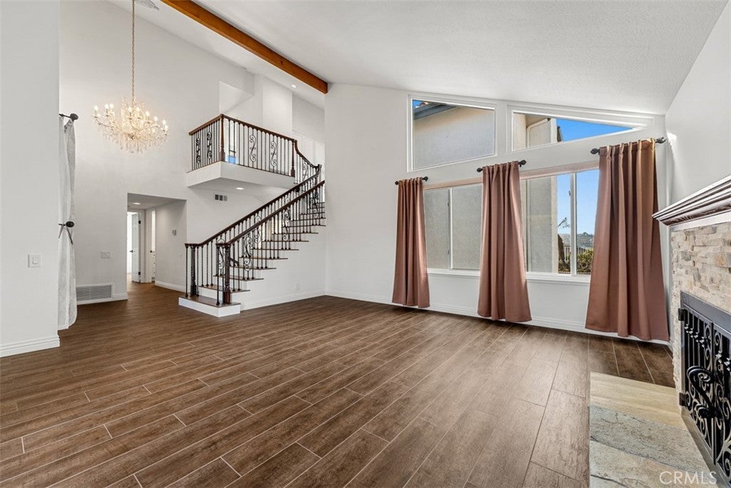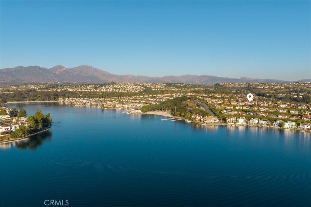 Beautiful mediterranean home over looking Lake Mission Viejo. Home is completely turn key. The exterior stucco with red tile roof and landscaping welcomes you into a home on a hillside with plenty of character with natural materials. Expansive windows with views, stone fireplaces, stunning staircase, high end kitchen, breakfast area, formal living room, wet bar, dining room, family room, separate large bonus/media room, laundry room, first floor bedroom, vaulted ceilings, master bedroom with balcony and view of the lake and mountains. The back yard with sweeping views of the lake, fountain, pool and spa. Three car garage. Access to private beach.