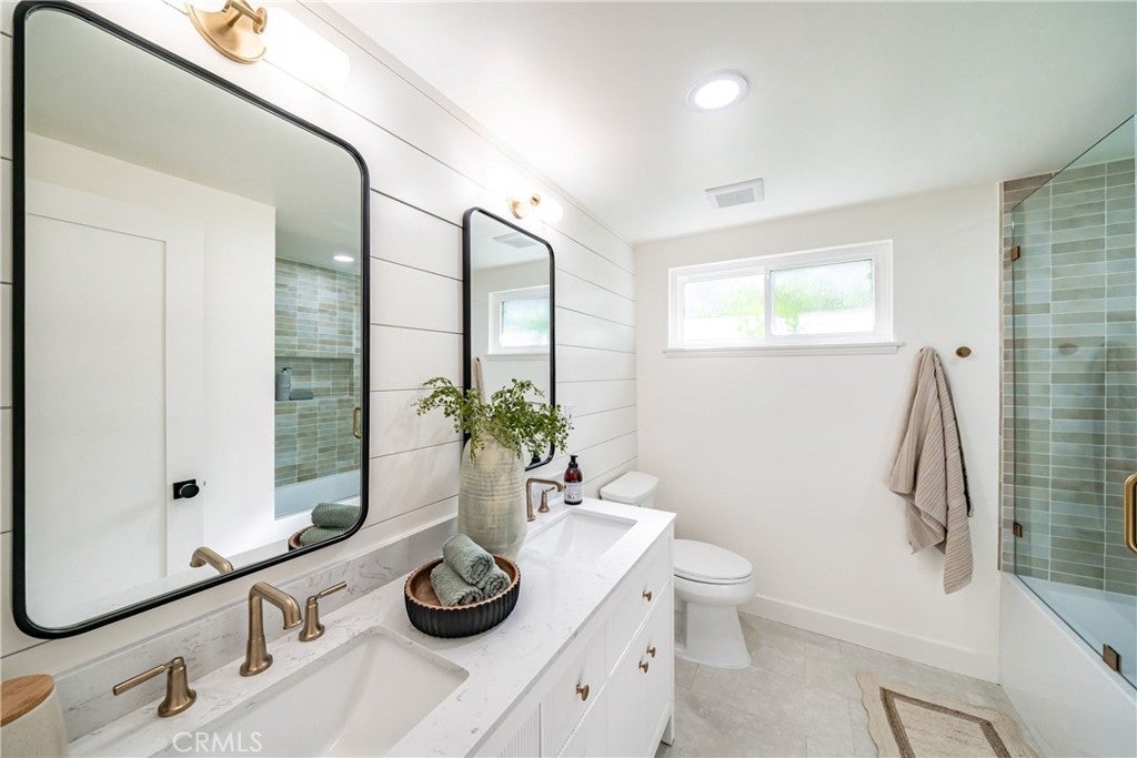 Welcome to this stunning, completely reimagined 4-bedroom, 2-bathroom single-level home, where thoughtful design meets modern luxury in one of Rancho Palos Verdes’ most desirable neighborhoods. No detail was overlooked in this full renovation, offering a truly move-in-ready experience. The light-filled interior showcases engineered hardwood floors, recessed lighting, and designer West Elm lighting throughout. The heart of the home is the beautifully curated kitchen featuring natural quartzite Taj Mahal countertops, slim shaker cabinetry, Top Knobs honey bronze hardware, Café appliances, and a statement Kohler enameled cast-iron farmhouse sink paired with a Kohler by Studio McGee brass faucet—a perfect blend of function and style. Both bathrooms have been tastefully upgraded with Bedrosians tile and sleek Delta shower and sink fixtures, creating a spa-like ambiance. Comfort and convenience are enhanced with a brand-new HVAC system with Nest controls, a Ring doorbell, and fresh interior and exterior paint. Outside, enjoy newly completed hardscape and landscaping, smooth stucco, a custom tile patio ideal for entertaining, a new fence, and a new garage door, all contributing to exceptional curb appeal and privacy. This turnkey Rancho Palos Verdes home seamlessly blends modern finishes with timeless design—perfect for today’s discerning buyer seeking style, comfort, and single-level living.
